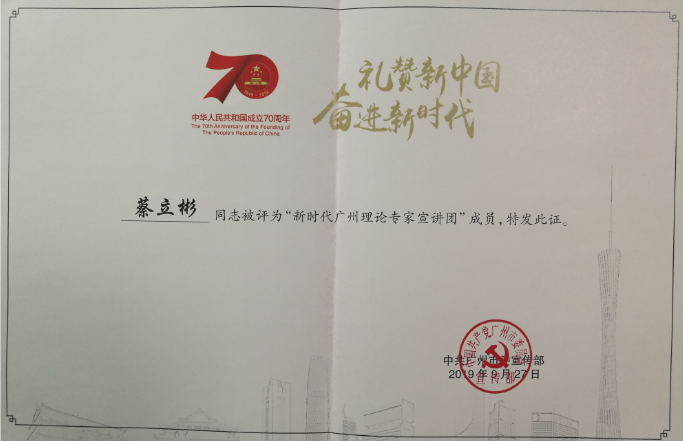 会上,广州市委常委、宣传部长徐咏虹同志为新时代广州理论专家宣讲团成员颁发荣誉证书。TapTapTapTap官网蔡立彬、翁礼成两教授荣获此荣誉。