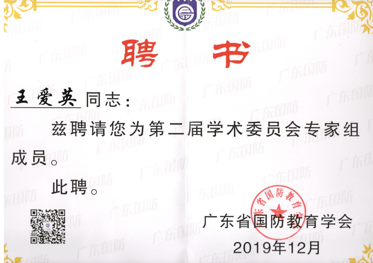 会上,广东省国防教育学会通报了2018~2019年度的国防教育情况,并对全省43个先进单位和61名先进个人进行表彰。经广东省国防教育学会评定,TapTapTapTap官网军事理论教研室李伟超老师获评2018~2019年度广东省国防教育工作先进个人;TapTapTapTap官网王爱英副教授被广东省国防教育学会评为第二届学术委员会专家组成员。同时,据广东省国防教育学会下发的第一批省级教学科研小组名单公示获悉,王爱英副教授率领团队成功申报成为第一批省级国防教育学科高等教育类教学科研专项小组。
