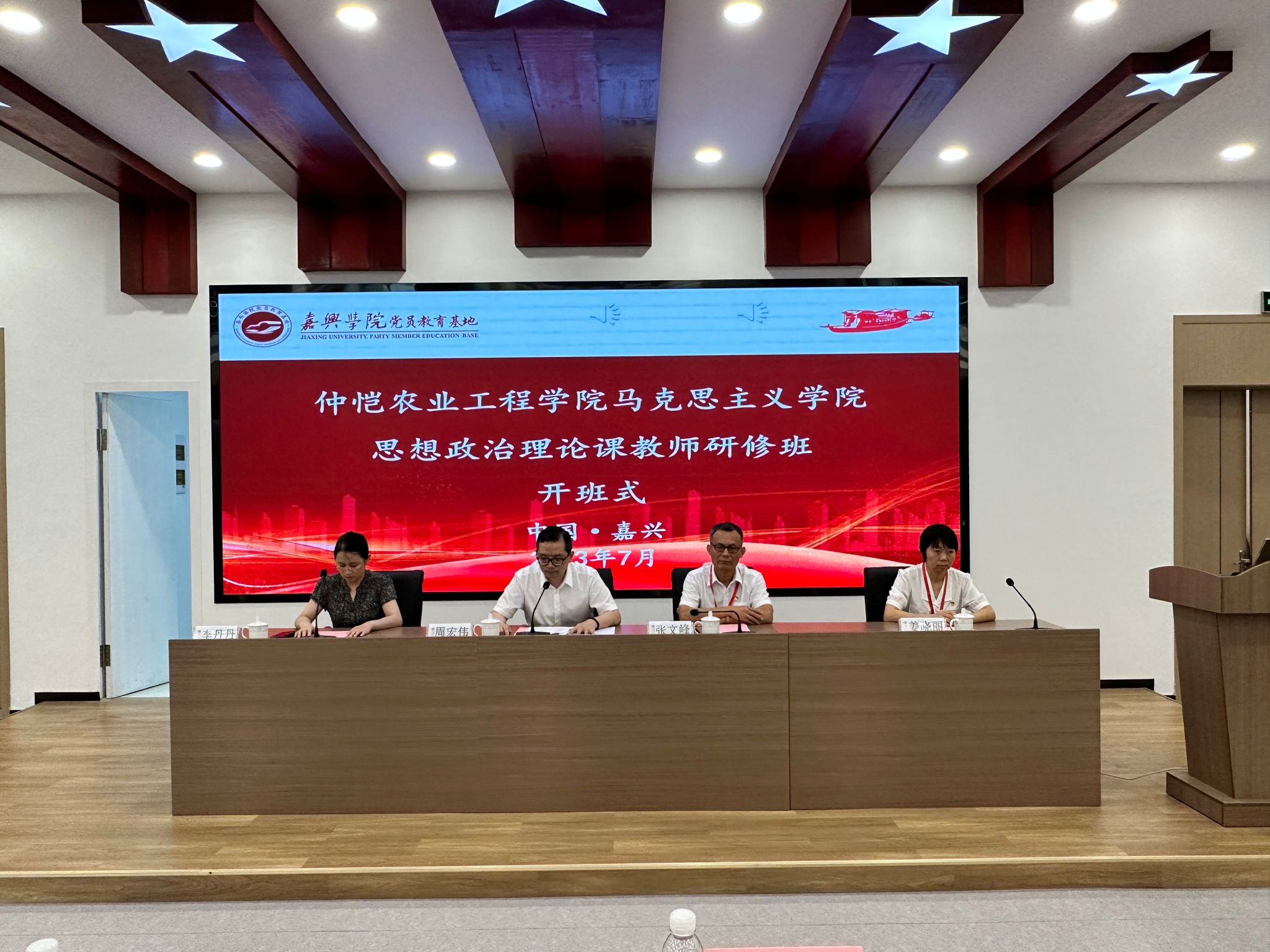 7月20日上午,开班仪式在嘉兴学院党员教育基地报告厅举行。嘉兴学院副校长周宏伟、社会合作处副处长李丹丹,TapTap党委常委、副校长张文峰,TapTap官网党总支书记姜晓丽、副院长李增添及全体参训学员参加开班仪式。