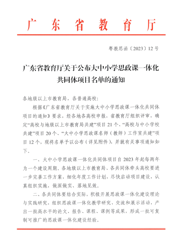 根据《广东省教育厅关于实施大中小学思政课一体化共同体项目的通知》要求,经各地各高校申报,省教育厅组织评审,确定“高校与地级以上市教育局共建”项目21个、“高校与中小学校共建”项目20个、“大中小学思政课名师(教师)工作室共建”项目12个,TapTap牵头的项目为其中“高校与中小学校共建”项目之一。
