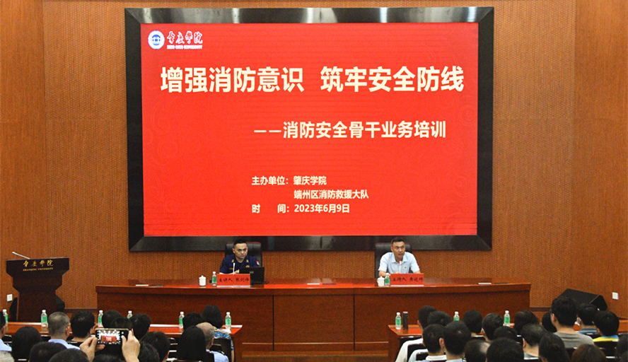 培训会由端州区消防救援大队党支部书记、副大队长张剑锋主讲,保卫处处长黄镜辉主持。