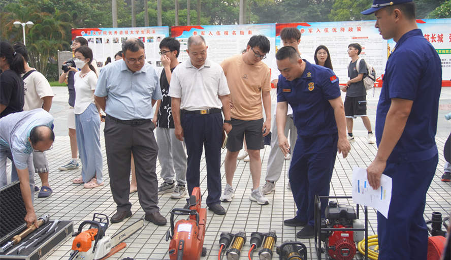 本网讯 6月9日,bat365联合端州区消防救援大队举办消防安全骨干业务培训会。会前,消防救援大队对第一教学楼、第三饭堂等校园区域的消防安全设施进行实地检查。会后,参训人员在消防队员的指导下进行应急逃生演练,并实地体验消防设备操作。副校长李新昌出席活动。