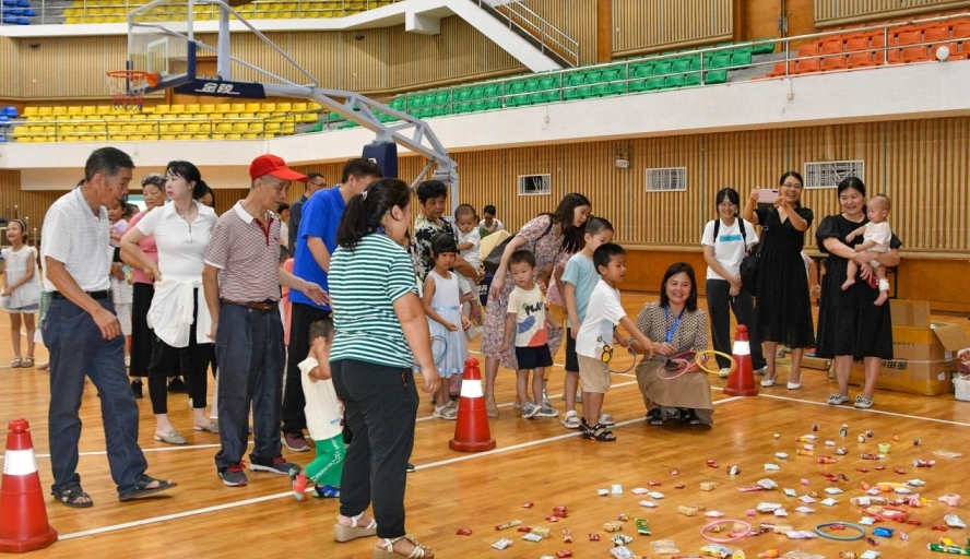 近250名教职工子女报名参加活动,活动分为幼儿组、小学组、初中组等三个小组展开,分别进行抛圈套物、跳绳和袋鼠跳、跳绳和仰卧起坐比赛。幼儿组分两队进行抛圈套物比赛,每人3个塑料圈,套取地上的奖品和礼物,可重复排队;小学组跳绳和袋鼠跳活动分低、高年级同时进行,其中亲子跳绳各计时一分钟、亲子接力袋鼠跳计时一次后登记成绩,并对成绩进行排名;初中组跳绳与小学组跳绳同时进行,随后进行仰卧起坐比赛,计时一分钟后登记成绩,并对成绩进行排名。