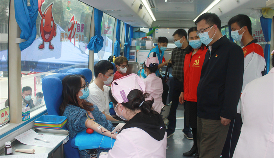 图为学校党委书记谢冠华慰问无偿献血师生