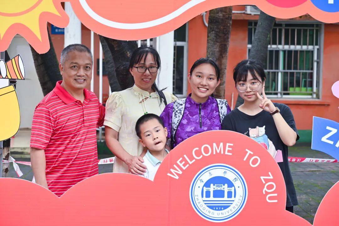 与父母在学校门口合一张影