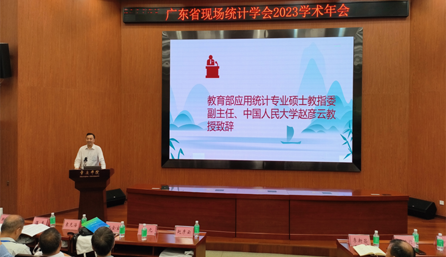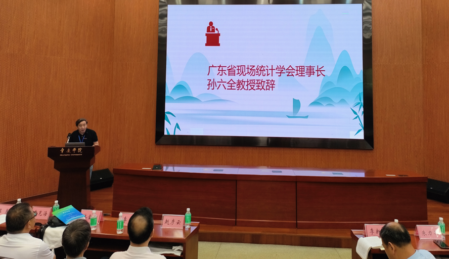副校长李新昌、广东省现场统计学会理事长孙六全、国务院学位办全国应用统计专业学位研究生教育指导委员会副主任赵彦云、教育部统计学类教学指导委员会委员石磊、朱力行和林金官以及来自省内外的130多名专家学者出席开幕式,学会常务副理事长黄颖强主持。