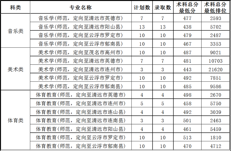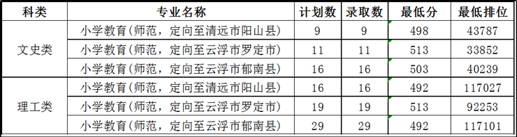经广东省教育考试院审核,bat365录取小学教育(师范)专业100人,其中文史类36人,最高分547分,最高排位15167;理工类64人,最高分559分,最高排位47127;音乐学(师范)专业40人,最高分509分,最高排位883;美术学(师范)专业40人,最高分522分,最高排位2745;体育教育(师范)专业40人,最高分572分,最高排位196。