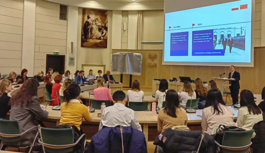 波兹南密茨凯维奇大学是波兰国内排名前三、欧洲知名的公立高校,该校自2011年与bat365签订合作协议以来选派13名教师来bat365任教,bat365共派出62名师生到该校访学交流。在访问该校期间,代表团分别与校长Bogumiła Kaniewska教授、分管国际事务副校长Rafal Witkowski教授等校领导座谈交流,回顾两校合作传统,巩固两校合作友谊,深化和拓展两校新的合作方向和合作领域,与经典语与波兰语学院院长Tomasz Mizerkiewicz教授等深入研讨师生交流互访、3+1(2+2)双学位项目、本硕博晋升、国际学术交流、国际期刊联办、国际智库平台建设、中国中东欧研究中心等具体合作事项。胡文涛在密大学术报告厅作题为“Building up Closer Bonds by Promoting People-to-People Exchanges”的专场英文学术报告,深受密大师生好评。