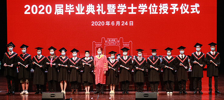 最后,毕业典礼在全场合唱《歌唱祖国》的歌声中落下帷幕。2020届毕业学子满载深切的祝福和殷切的瞩望,告别母校,踏上征程,接受全新挑战,投身时代伟业。