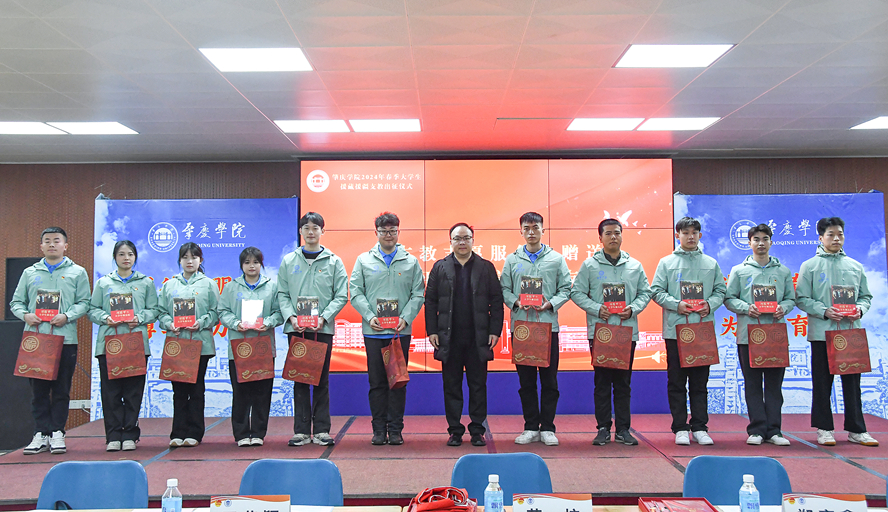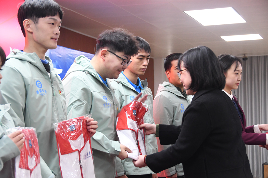 仪式上,谢冠华为支教服务队授旗、佩戴绶带,欧洪湛为支教服务队队员佩戴绶带、颁发证书。校党委委员、组织部部长、党政办主任谭冠中宣读关于第十三批大学生援藏支教志愿服务队和第四批大学生援疆支教志愿服务队成立临时党支部的批复,并向临时党支部队员们赠送党旗、党员学习材料。相关职能部门领导及二级学院领导向服务队队员赠送志愿者服、爱心礼包以及党员学习资料。