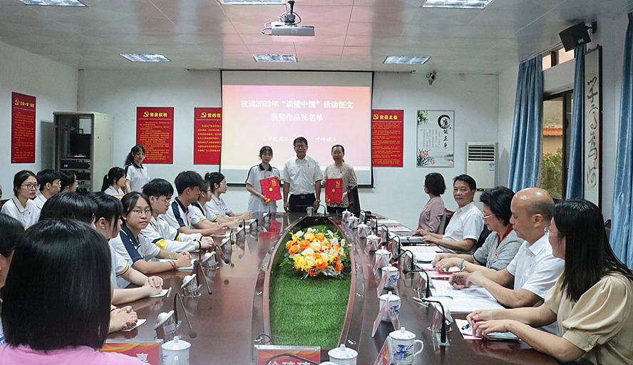 在各学院调研期间,学校关工委、组织部、宣传部、离退休党委向二级学院学生党支部捐赠了《中国共产党简史》等一批党史学习资料,并向2023年“读懂中国”活动中获得奖励的师生进行颁奖。