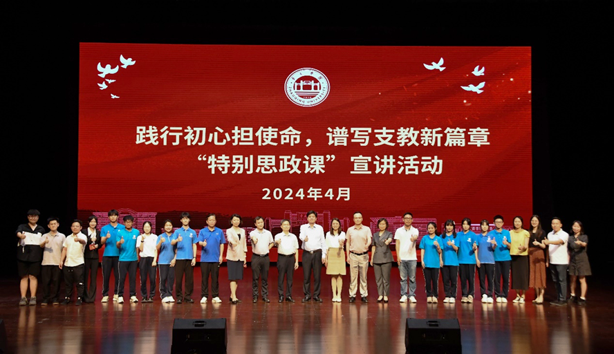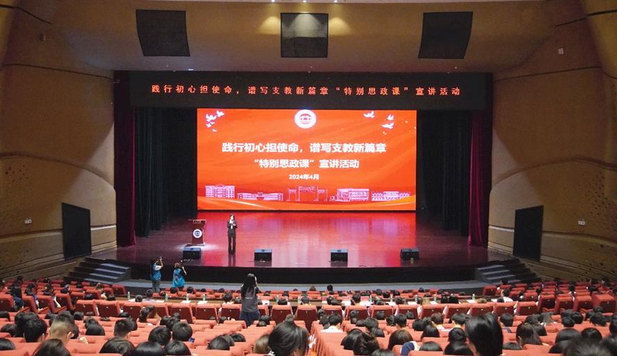 本网讯 4月24日,bat365在艺术中心开展以“践行初心担使命,谱写支教新篇章”为主题的“特别思政课”宣讲活动,引导和鼓励青年大学生为祖国奉献青春、建功立业,培育和践行社会主义核心价值观。