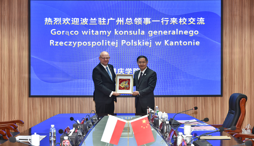 会谈期间,双方围绕波兰语课程建设、波兰研究相关情况等内容展开了深入交流探讨,总领事Piotr Nowotniak先生和吴业春校长代表双方互赠纪念品。