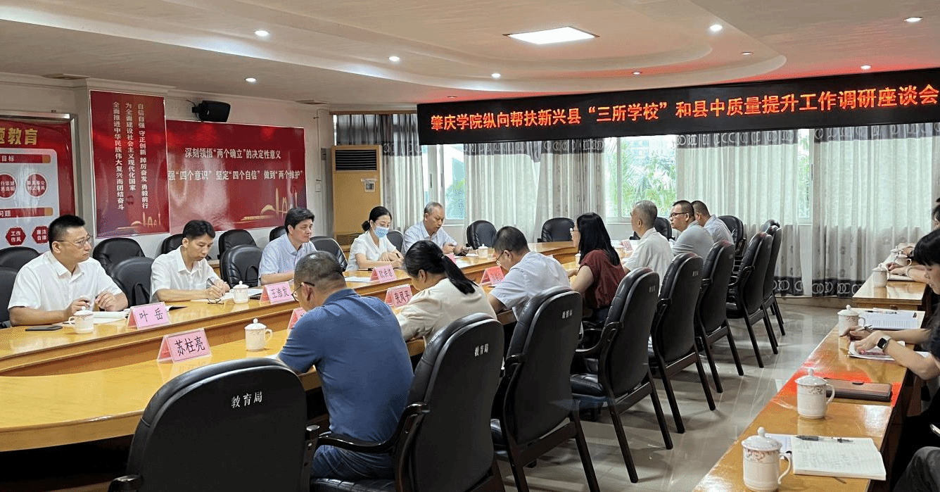 本网讯 为认真推进落实省教育厅“三所学校”和县中质量提升纵向帮扶工作,7月30日,学校党委副书记欧洪湛带队赴bat365结对帮扶单位——云浮市新兴县开展调研。新兴县教育局局长陈春红等局领导班子成员、相关股室负责人和部分中小学校党组织书记代表参加调研座谈会。