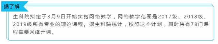 生科院采取这种人性化的做法,主要是为了使学生学习效果优先的原则能够落地。等3月9日这个时间到了,网络教学开始了,学院将密切观察,研究解决可能出现的问题。