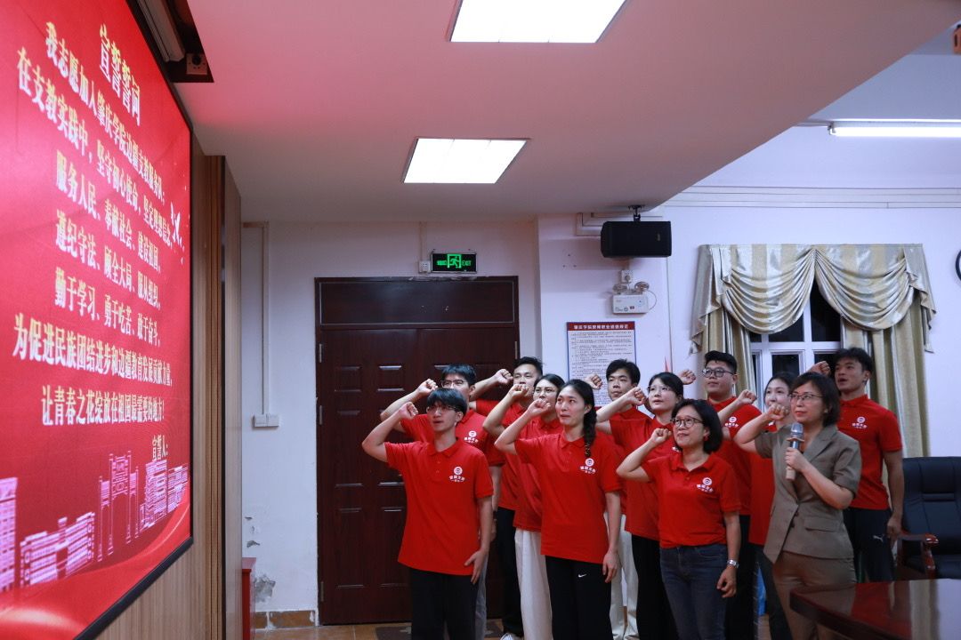 随后,学生工作部(招生与就业指导中心)副部长董业凤带领全体援藏支教队员进行出征宣誓。