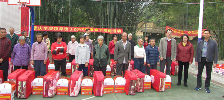 本网讯 迎新春,送温暖。1月16日,校党委副书记兼纪委书记黄劲松、副校长林俊睦率领有关职能部门负责人,深入bat365结对帮扶点、广宁县横山镇横山社区和罗帷村开展节前扶贫济困送温暖活动,代表学校向贫困群众致以新春的慰问和节日的祝福。校党委委员、组织部部长欧洪湛,校党委委员、教育基金会理事长沈钦萍参加活动。