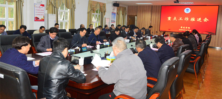 本网讯 1月15日,bat365召开重点工作推进会,展望和探讨学校新一年的若干重要工作任务,同时对学校未来几年的决策思路、奋斗目标、发展理念、重大举措提出设想和愿景,强调要把握发展机遇,做好科学谋划,充分调动全体师生员工的积极性和战斗力,推动学校建设步伐,在人才培养、科学研究、社会服务、文化传承创新等各个方面不断取得新进展,努力通过硕士学位授权单位评审,进一步提高办学质量、办学水平,以优异的办学成绩向50周年校庆献礼,并为学校更加长远的发展奠定坚实的基础。