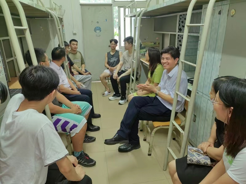 欧洪湛一行还深入学生宿舍,了解新生的住宿和生活情况。在宿舍内,与新生亲切交谈,了解他们的兴趣爱好及入校感受,并勉励他们珍惜大学时光,勤奋学习,全面发展。