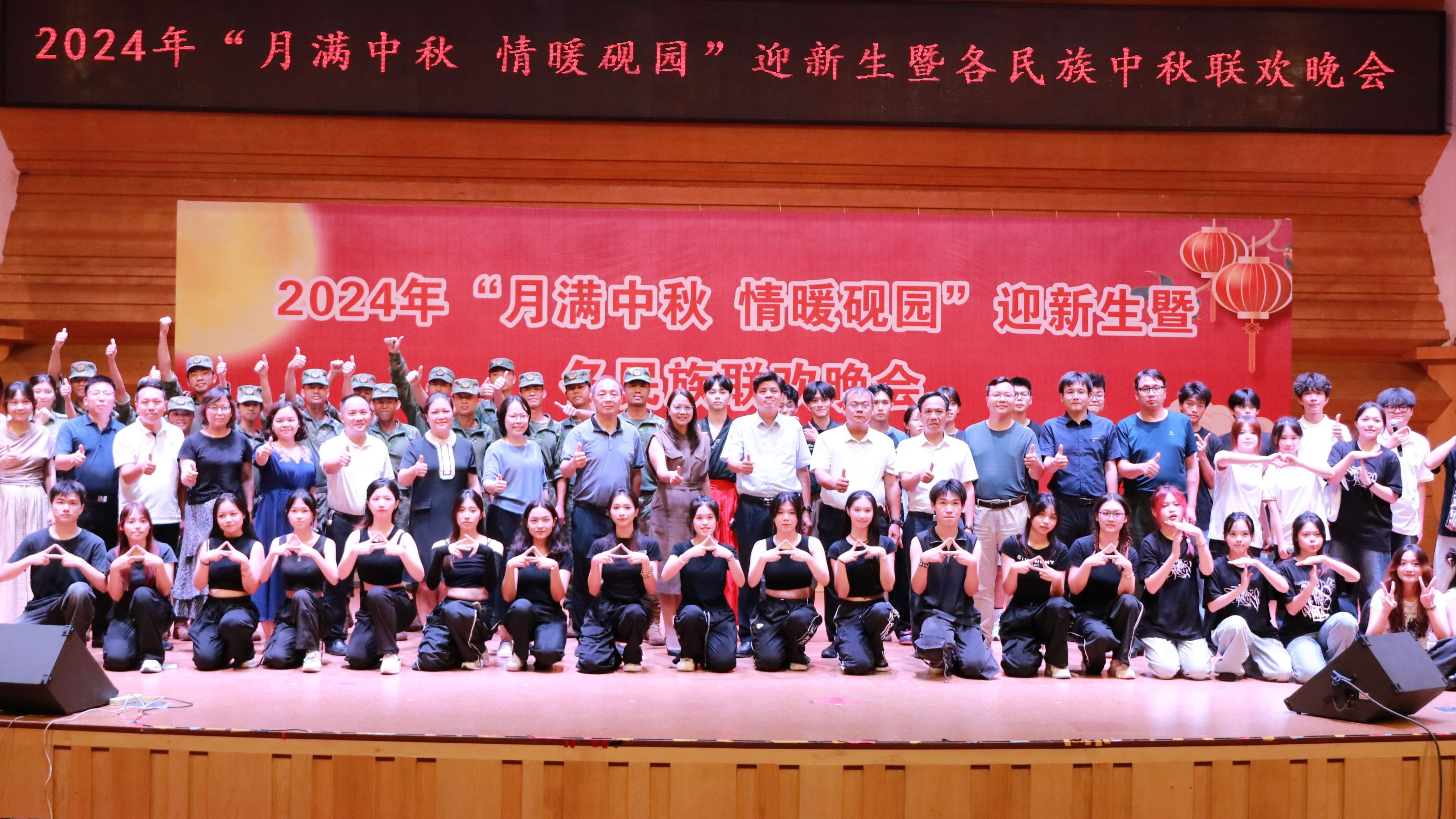 本网讯 为庆祝中秋佳节,同时热烈欢迎2024级新生的到来,9月17日晚,学校“月满中秋 情暖砚园”迎新生暨各民族中秋联欢晚会成功举办。晚会主会场设在bat365正版唯一官网陈熹音乐厅内,各二级学院在各自训练场举行了分会场欢庆活动。学校党委副书记欧洪湛、副校长李新昌出席活动,各单位相关负责人参加主会场活动。