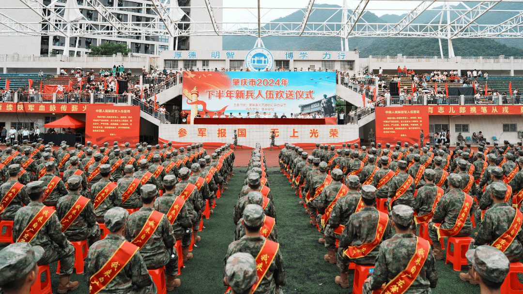 上午,欢送仪式正式拉开帷幕。仪式上,李帆宣读《批准入伍命令》,希望新兵传承“铁军”精神,安心服役,积极投身国防和军队现代化建设事业,为“八一”军旗添彩,为肇庆人民争光。张永波向入伍新兵表示热烈祝贺,并向新兵寄予厚望,希望他们赓续红色基因,争做“四有”新时代革命军人,用青春热血铸就军旅辉煌,用奖章喜报谱写无悔华章。董信奇强调,新兵应忠诚使命、立志报国,把青春梦与强军梦融为一体;应苦练本领、立志成才,在投身强军实践中成长成才;应牢记宗旨、立志为民,为祖国争光、为肇庆添彩。欧洪湛指出,入伍新兵应时刻牢记父老乡亲的嘱托,严守纪律、听从指挥、不惧艰难、勇于拼搏,用勇敢无畏和聪明才智,书写出壮丽辉煌的人生篇章,在部队中绽放光彩,创造辉煌。