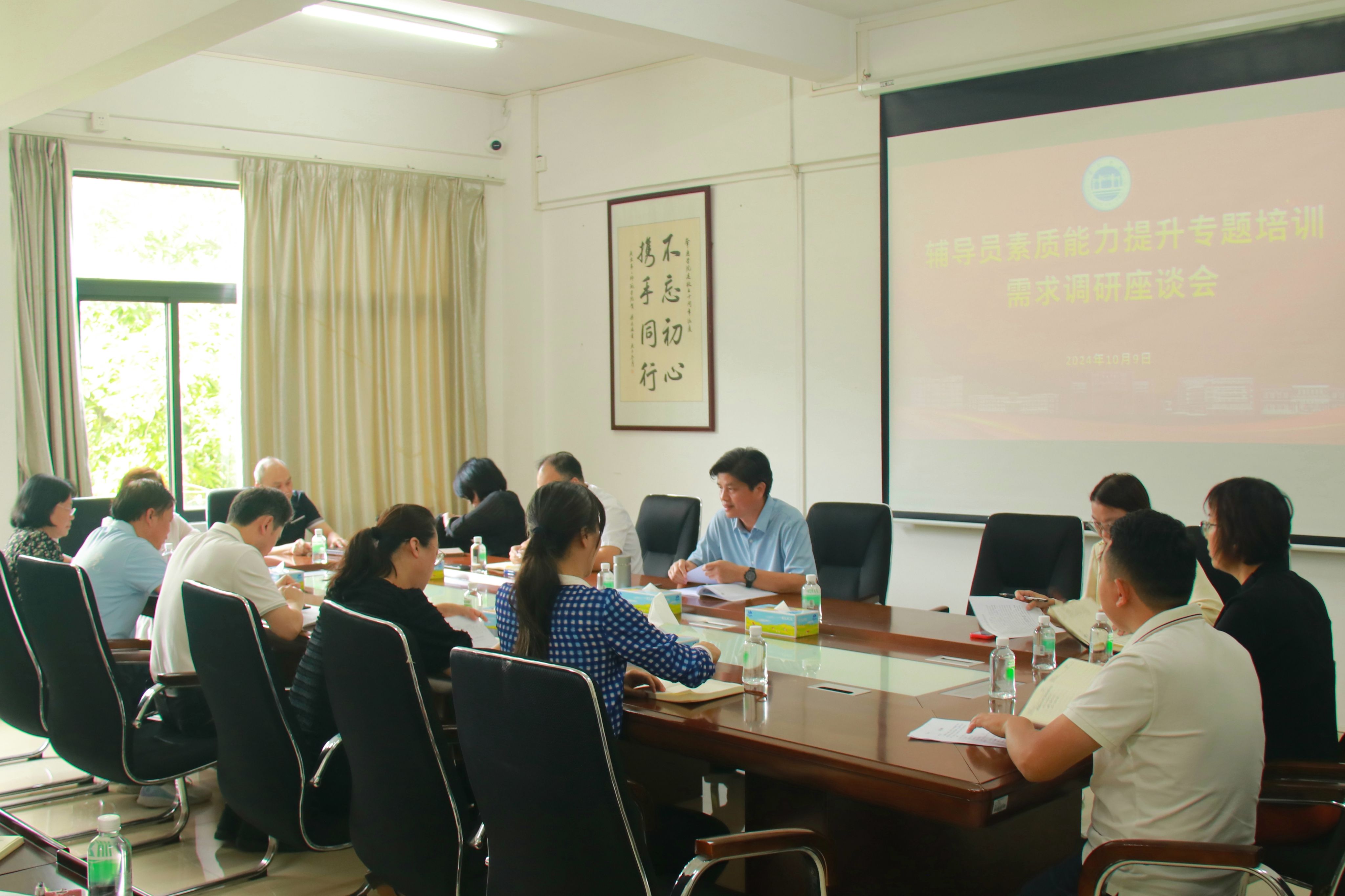 本网讯 为深入了解辅导员工作实际和发展需求,加强辅导员队伍建设,10月9日,学校召开辅导员素质能力提升培训需求调研座谈会。校党委副书记欧洪湛出席并主持会议。宣传统战部、团委负责人,学生工作部(招生与就业指导中心)班子成员以及二级学院书记、副书记、辅导员代表参会。