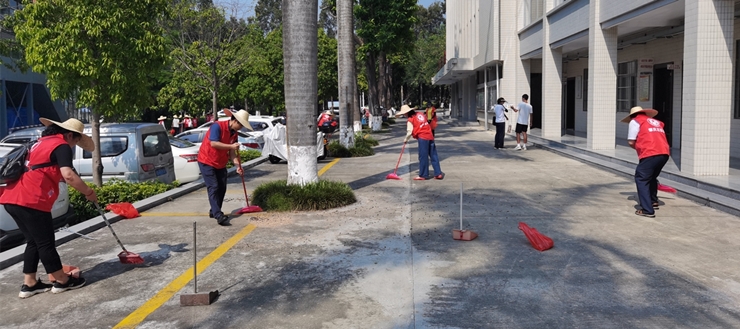 疫情防控期间,非毕业生无法返校,学校组织教工党员志愿者多次深入学生宿舍通风消毒、打扫卫生、晾晒被衣,筑起疫情防控的爱心长城。全校各部门落实“门前三包”要求,清扫办公、教学和实验场所卫生,清洗新建的清洁消毒设施,为新学期开学提供健康保障。
