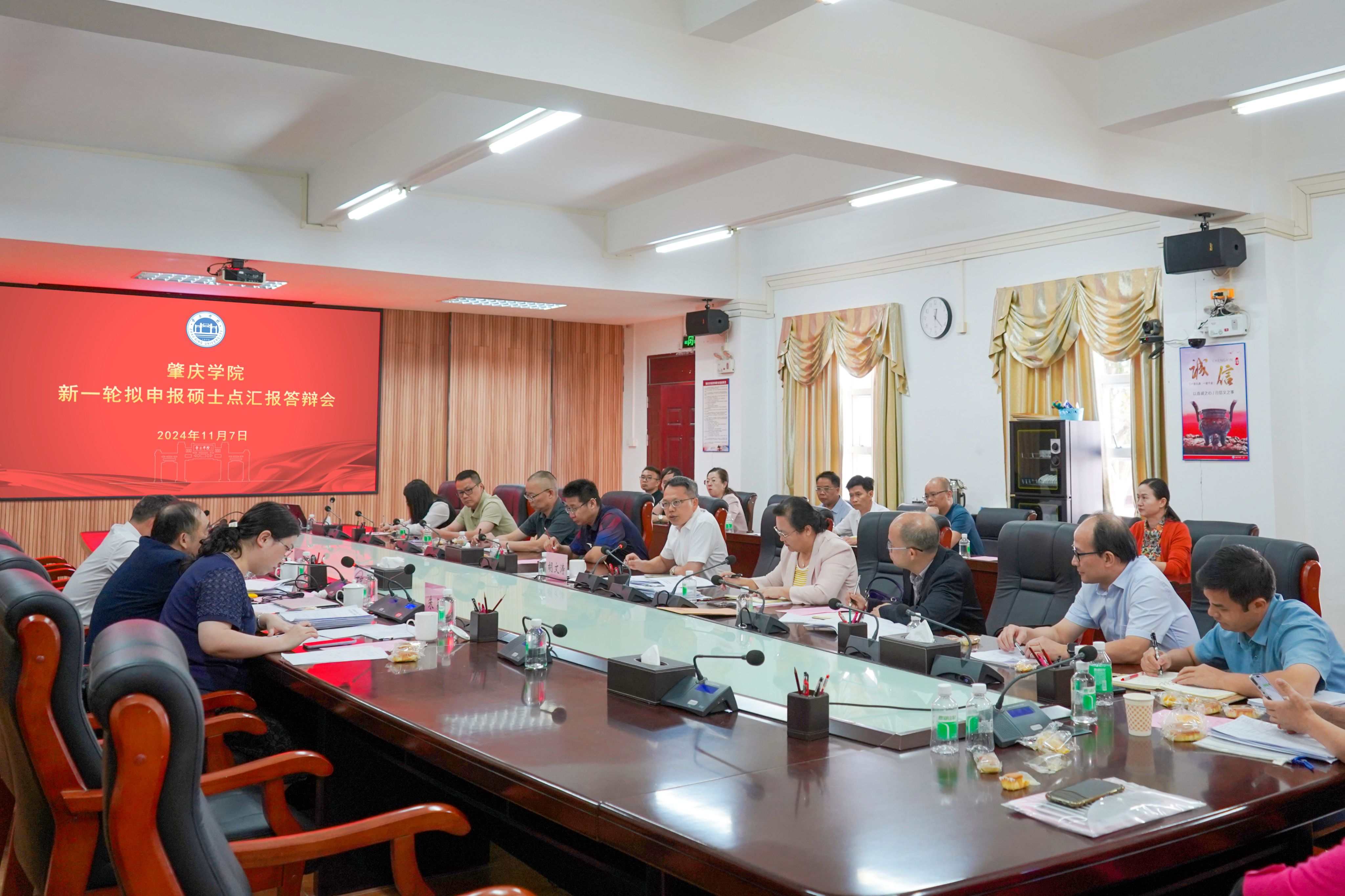 本网讯 为进一步推进新一轮硕士学位点申报工作,提升申报质量,11月7日,bat365召开新一轮拟申报硕士点汇报答辩会,邀请3名分别来自广东工业大学、广东外语外贸大学、广东技术师范大学等省内兄弟院校的学科专家到校,对各学位点申报工作作出指导。副校长胡文涛出席并讲话,研究生院院长唐雪莹主持。相关二级学院书记、院长、分管研究生教育工作副院长和研究生院副院长参加会议。