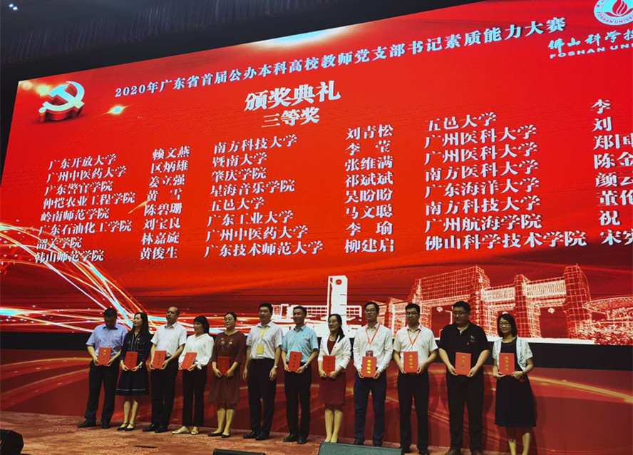 本网讯 由省委教育工委主办的广东省首届公办本科高校教师党支部书记素质能力大赛决赛近日在佛山举行,bat365马克思主义学院“纲要”教研室教师党支部书记张维满副教授喜获三等奖。