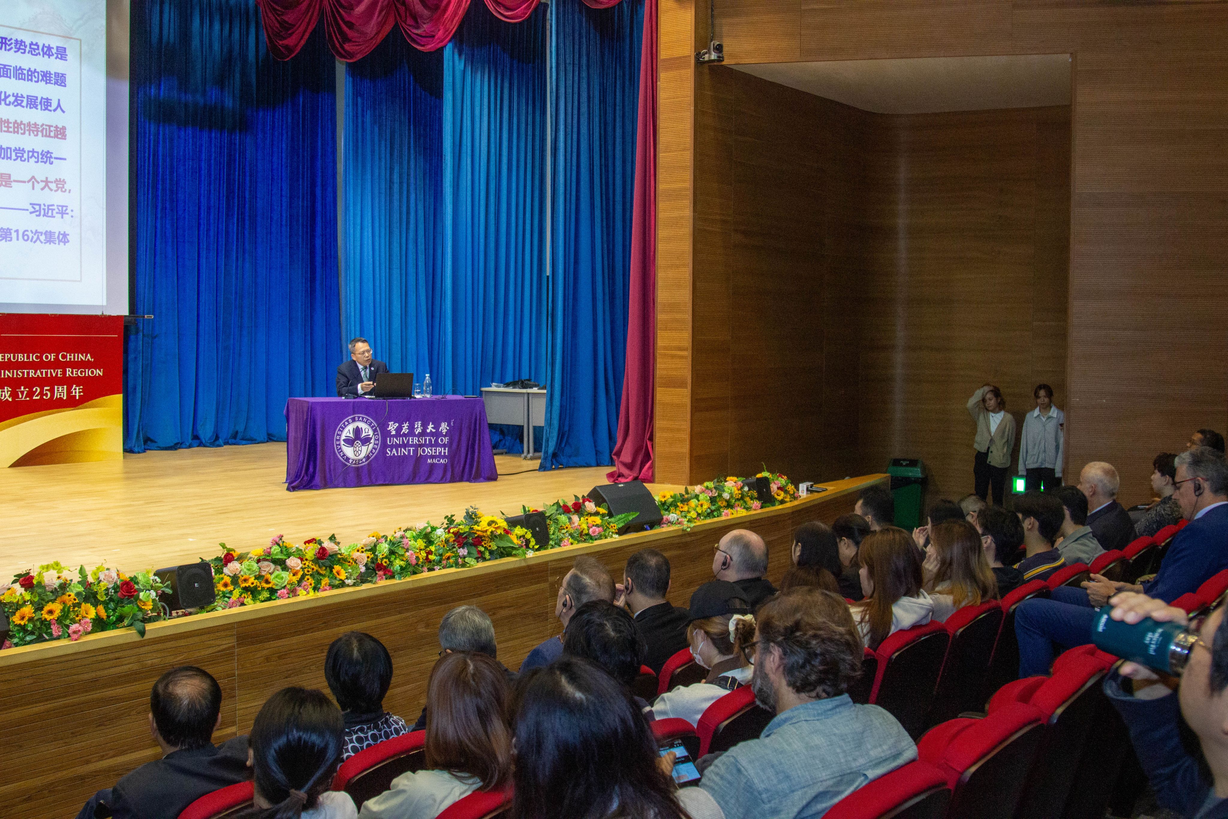 访问期间,bat365分别与澳门城市大学、圣若瑟大学签署合作协议,进一步加强在科研合作、教师互访、学生联合培养等方面的合作交流。胡文涛副校长应邀为圣若瑟大学师生主讲《新时代我国文化强国建设的行动指南》公开课,深入探讨习近平文化思想的形成背景、基本框架、核心要义及其在当前社会中的实践价值,讲座深受师生好评。