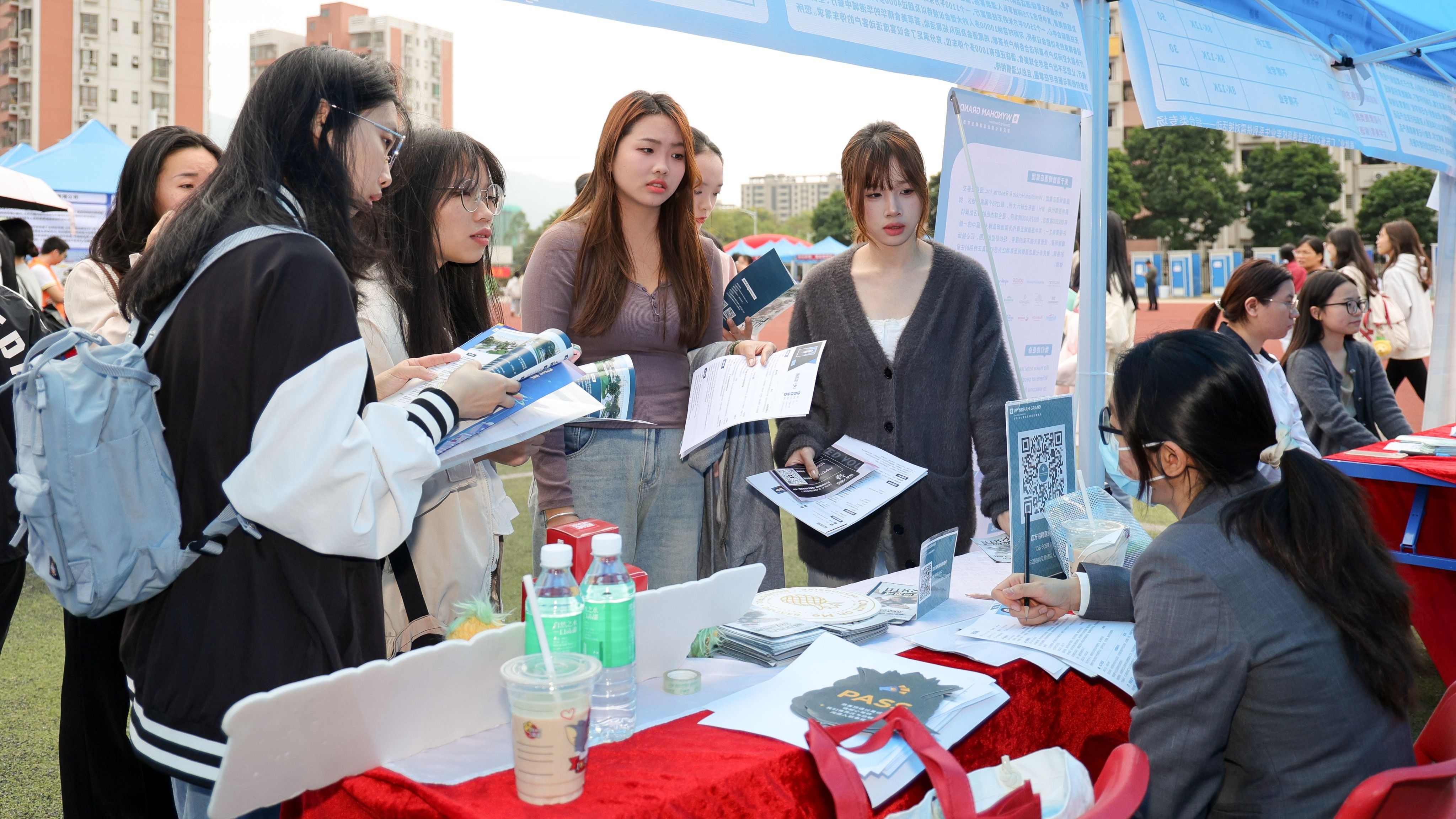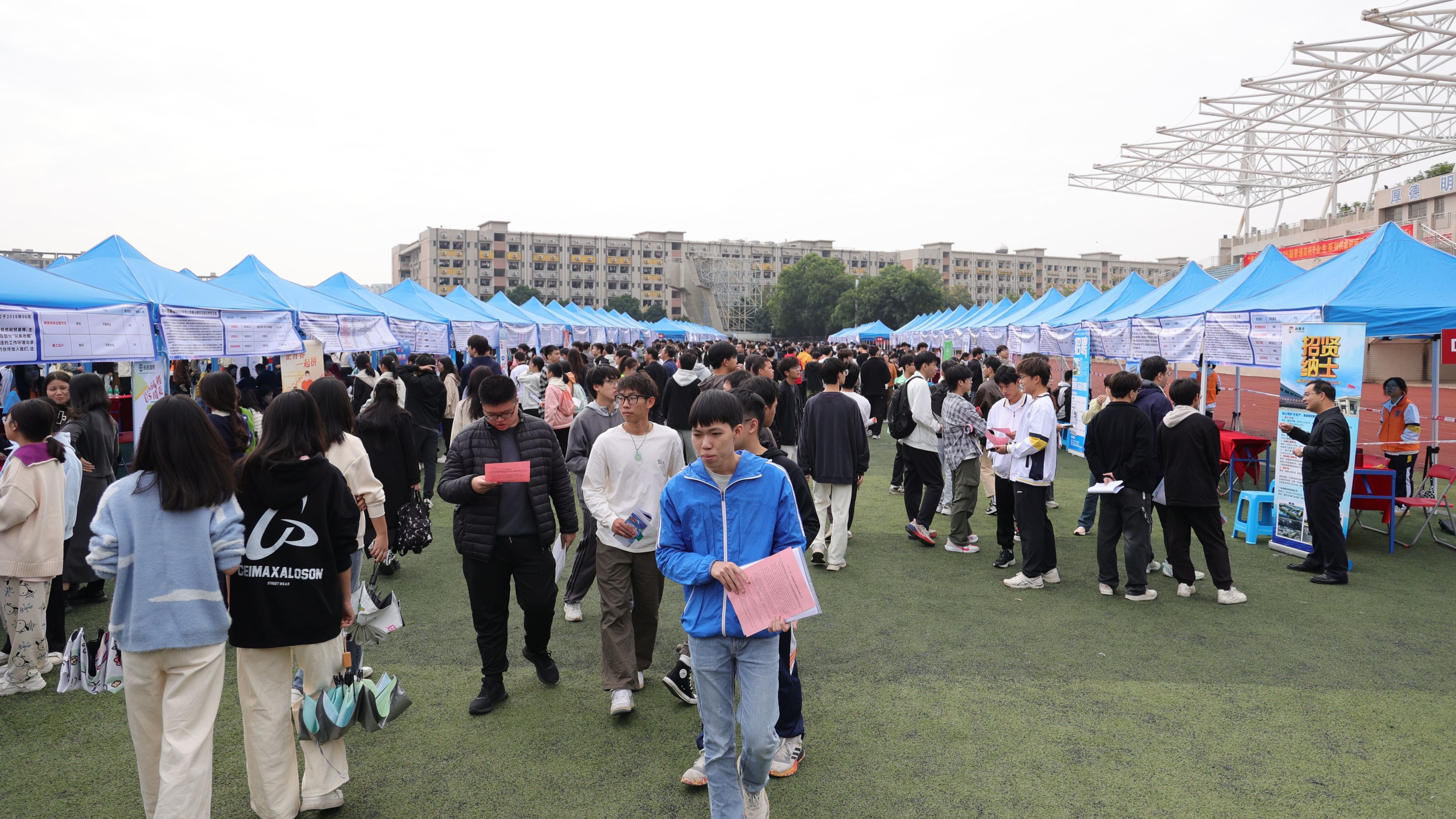 活动现场,人流如织,气氛热烈,各个展位前聚集了众多求职的学生,他们与招聘人员进行深入交流,寻找适合自身发展的职位机会。本次供需见面活动依托广东省高校毕业生就业创业智慧服务平台,线上线下招聘同步开展;共吸引小鹏汽车、元气森林(广东)饮料有限公司、广州浪奇日用品有限公司、内蒙古伊利实业集团股份有限公司、新奥燃气有限公司、肇庆市国资委下属企业、肇庆高新区优质企业等近400家(含线上线下)用人单位参加,提供优质岗位数量1200多个,招聘需求人数达9000多人;其中,线下参与企业近300家,提供岗位1100多个,招聘需求人数8000多人;线上参与企业近100家,提供岗位180多个,招聘需求人数达1000多人;参会企业涵盖了新能源、智能制造、生物医药、电子信息、计算机、建材、化工、文化、教育、医疗、金融、物流、贸易、服务等行业产业等多个领域,吸引了本校及周边高校5000多名学生参与了本次供需对接活动,企业累计收取简历9000多份。