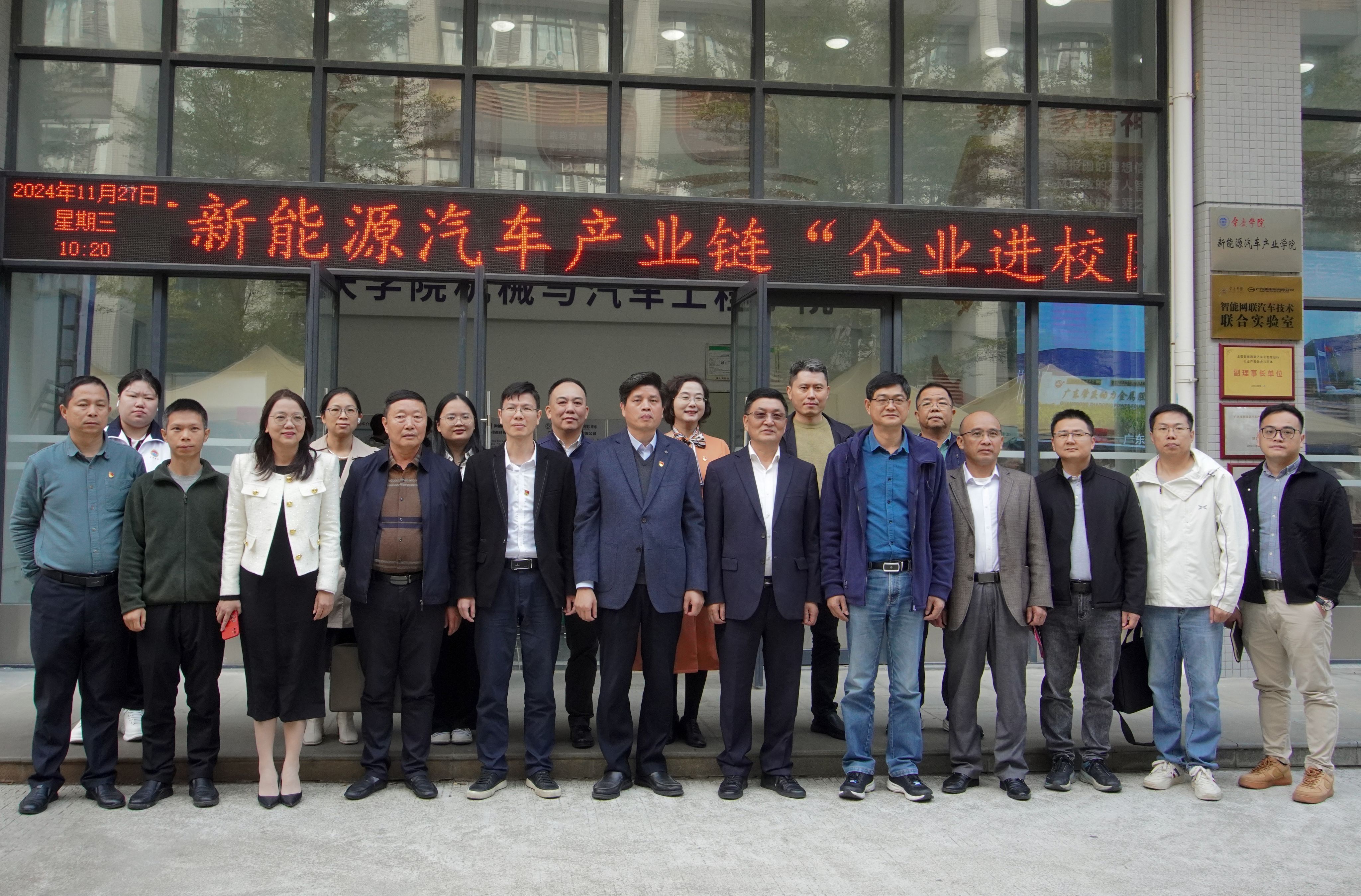 本网讯 11月27日,肇庆市新能源汽车产业链 “企业进校园・学生进企业” 启动仪式在机械与汽车工程学院举行。活动以 “校企携手,共创未来” 为主题,整合企业与院校资源,构建教育、产业、人才三链协同格局。bat365正版唯一官网党委副书记欧洪湛、副校长唐冬冬、肇庆市人社局副局长方大振,肇庆市教育局、工信局,肇庆市新能源汽车及汽车零部件行业协会及肇庆市新能源汽车龙头企业,如小鹏汽车、瑞庆时代等近30家企业代表参加启动仪式,并开展2025届毕业生就业招聘活动。