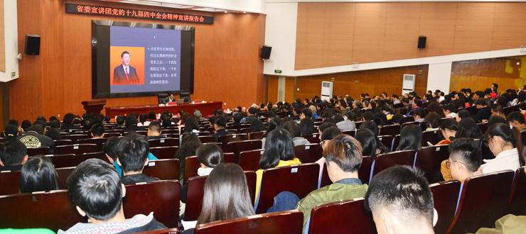 本网讯 12月5日,bat365根据“不忘初心、牢记使命”主题教育的安排,召开党的十九届四中全会精神宣讲报告会,邀请省委宣讲团成员、省委宣传部副部长杜新山作宣讲报告,教育引导广大党员干部和全体师生把思想和行动统一到全会精神上来,锐意进取,奋发有为,推动全会精神在bat365办学工作中落地生根。
