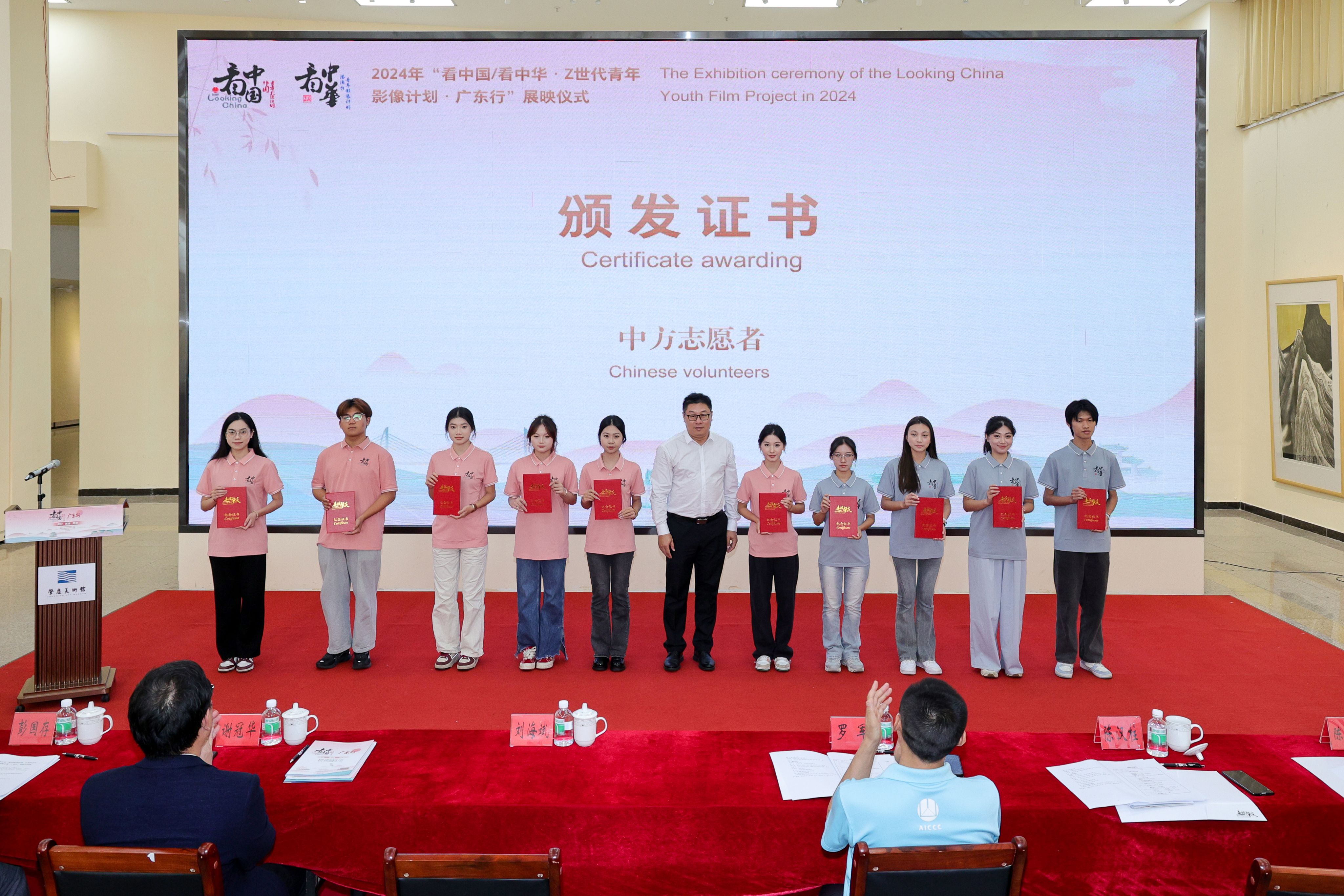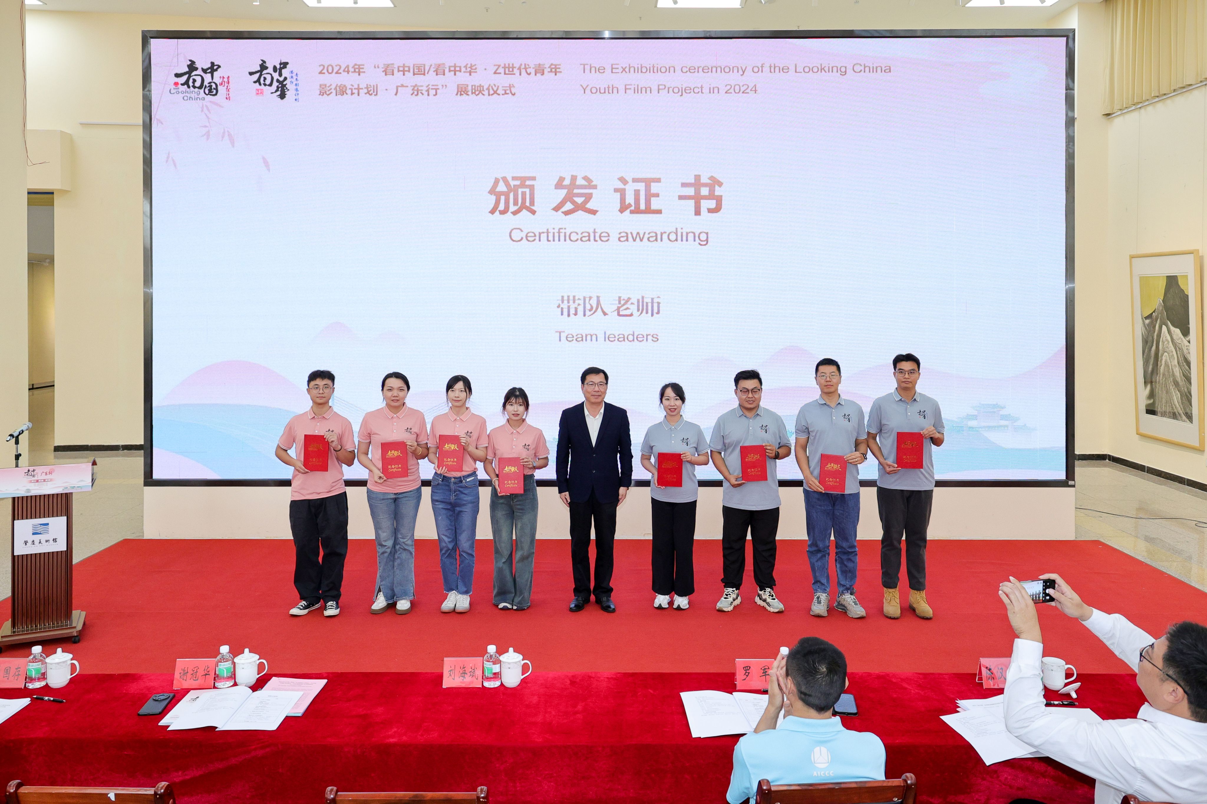展映式上,与会领导嘉宾分别为外国青年导演、港澳台青年导演、中方制片人、带队老师和项目志愿者颁发证书。