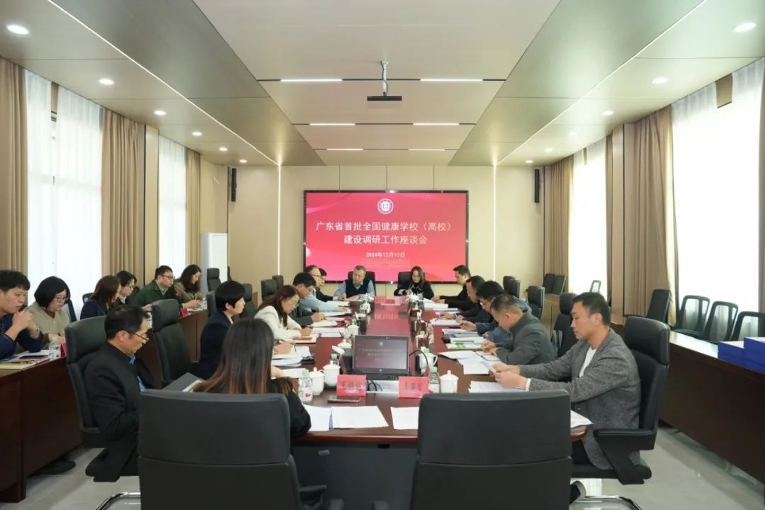 本网讯 12月10日,全国健康学校(高校)建设专家组一行到bat365调研指导全国健康学校建设工作。广东省教育厅体育卫生与艺术教育处副处长张文跃,广东省高校健康教育教学指导委员会副主任委员、南方医科大学卫生管理学院副院长、教授张持晨,广东省职业病防治院党委书记、中国健康促进与教育协会传播分会副主委郑子谦,肇庆市疾病预防控制中心健康教育科科长、广东省预防医学会健康促进与教育专委会常委姚梓坚等专家到校调研指导。副校长唐冬冬陪同调研,党政办公室、宣传统战部、学生工作部(招生与就业指导中心)、人力资源部、教务部、发展规划部、财务部、总务后勤部、基础建设部、保卫部(武装部)、团委、体育与健康学院等有关单位负责人参与活动。