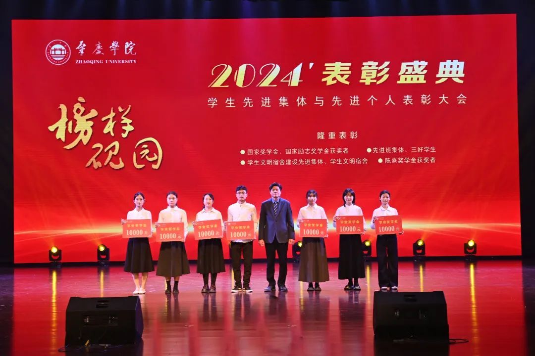▲欧洪湛为获得国家奖学金的学生代表颁奖