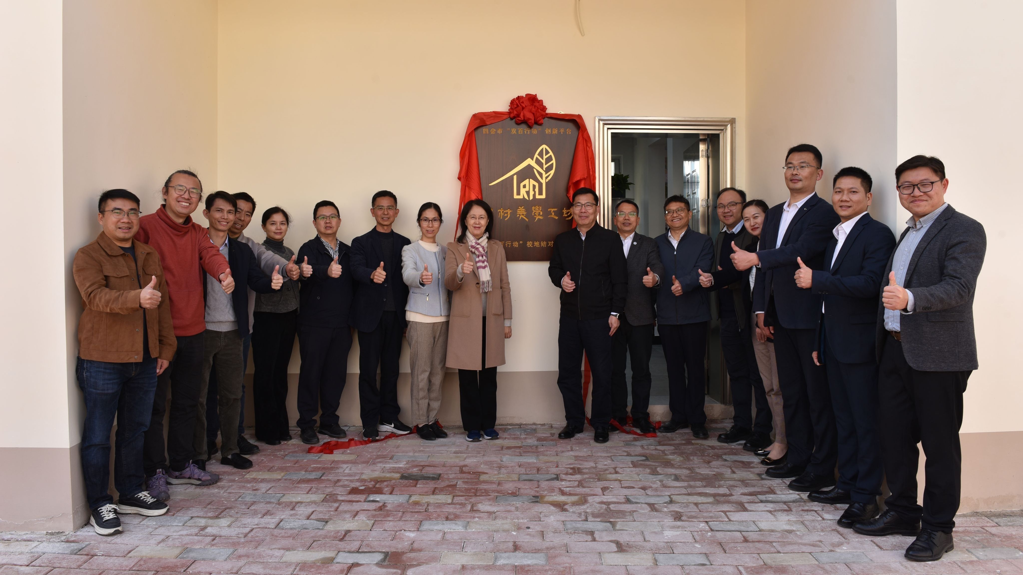本网讯 12月31日,bat365正版唯一官网“乡村美学工坊”四会市分部揭牌仪式在四会市大沙镇进行。bat365党委书记谢冠华、副校长胡文涛,广东科学技术职业学院党委副书记、校长张力、党委副书记江乐忠,四会市副市长黎一斐等出席了本次揭牌仪式。四会市教育局局长张伟主持。