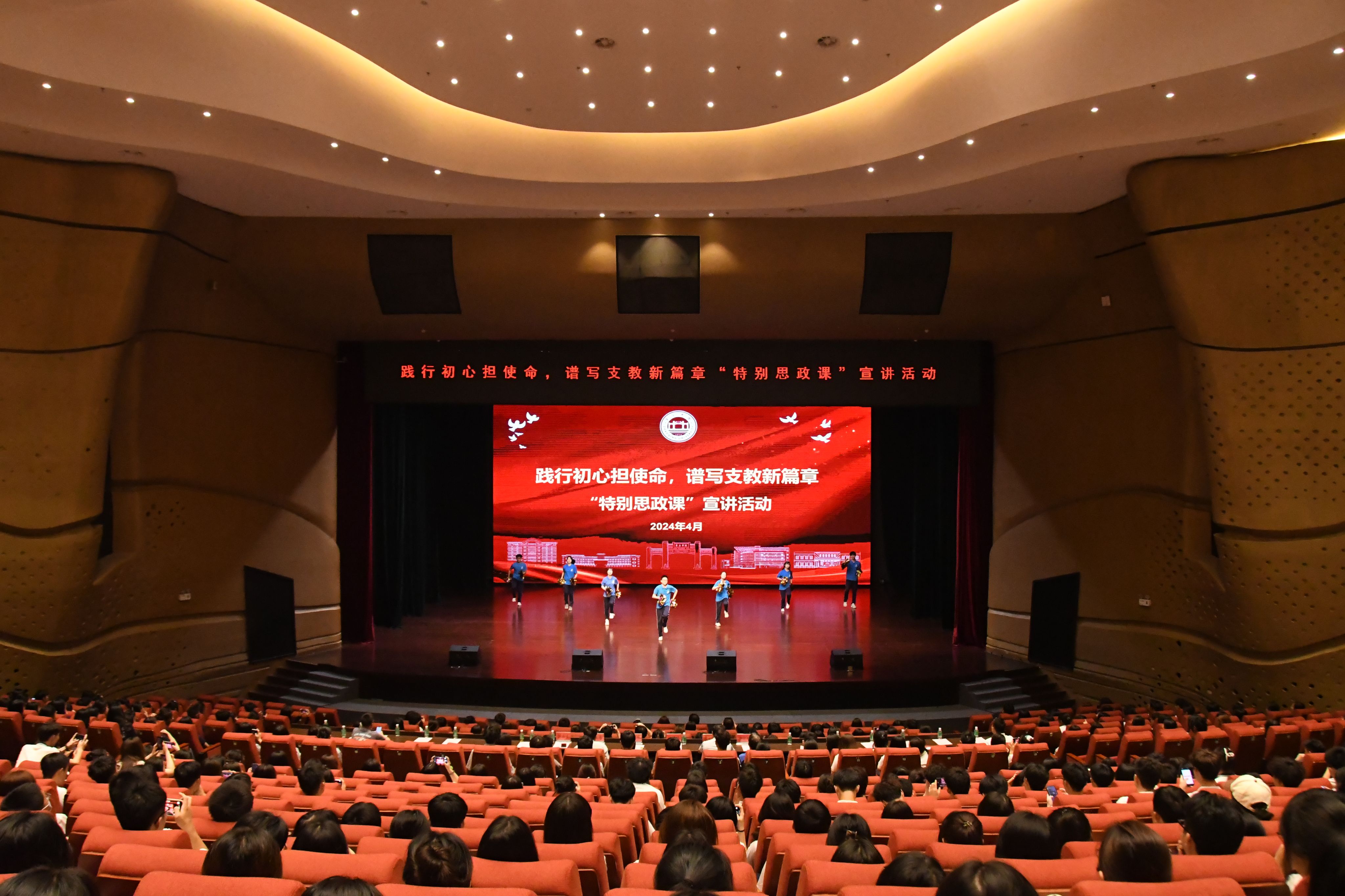 4月24日,为深入贯彻落实习近平总书记关于“大思政课”的重要精神以及教育部等十部门印发《全面推进“大思政课”建设的工作方案》,学生工作部联合宣传统战部、校团委、马克思主义学院开展以“践行初心担使命,谱写支教新篇章”为主题的“特别思政课”宣讲活动,引导和鼓励青年大学生为祖国奉献青春、建功立业,培育和践行社会主义核心价值观。本年度,bat365共选拔40名大学生分赴西藏墨脱县和新疆疏附县开展支教工作,均荣获“优秀援藏人才”称号和“优秀实习生”称号。其经验做法凝练的典型工作案例荣获全省高校美育改革创新优秀案例一等奖,“我的支教故事”征文获全省三等奖1项。