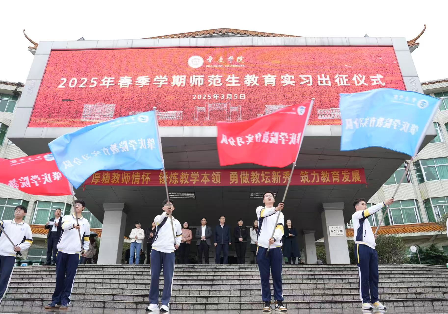本网讯 3月5日,2025年春季师范生教育实习出征仪式在国砚广场举行。校党委书记谢冠华出席,副校长肖起清主持,相关职能单位负责人和各二级学院院长、分管实习工作的副院长、教育实习指导教师和学生代表参加。