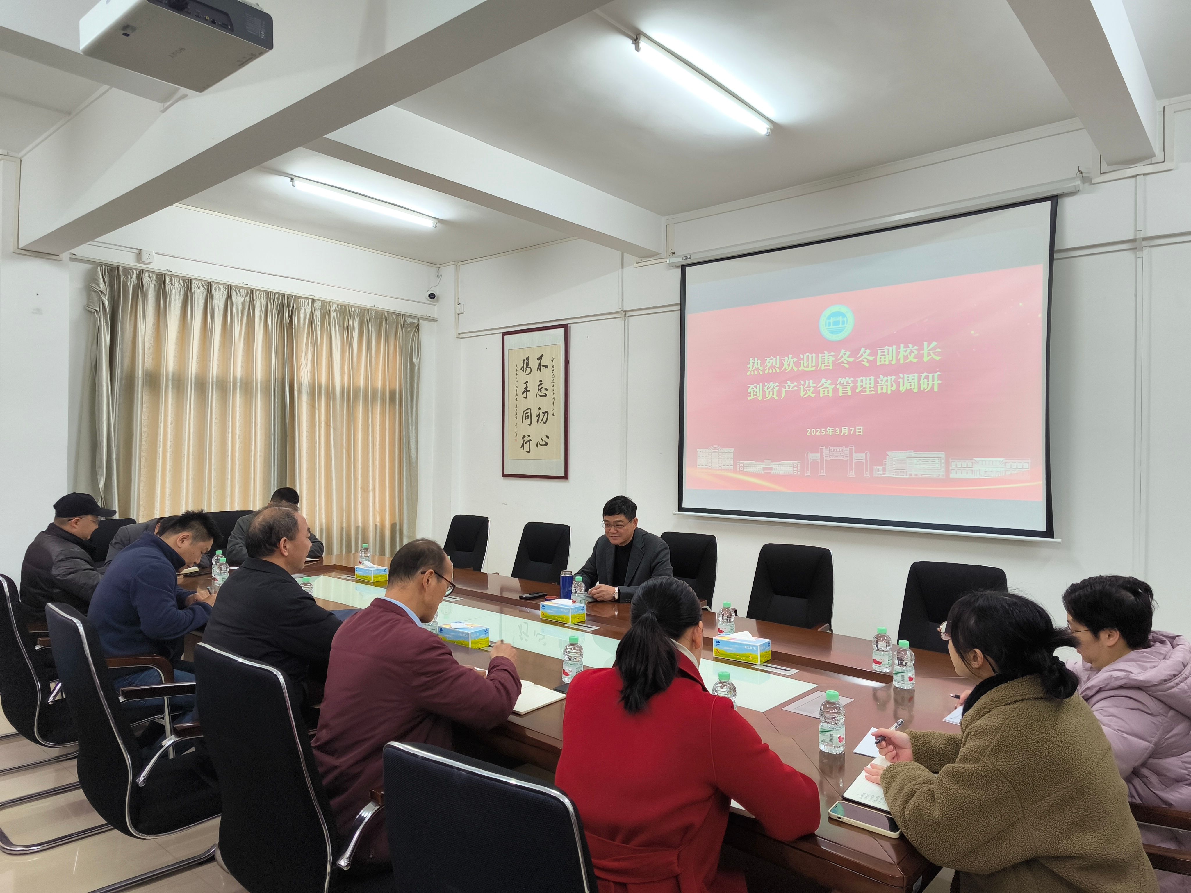 本网讯 为全面了解和指导学校资产管理工作,3月7日,副校长唐冬冬深入资产设备管理部开展专题调研,听取部门工作汇报并提出指导意见。资产设备管理部部长苏文英及部门全体成员参加调研会议。