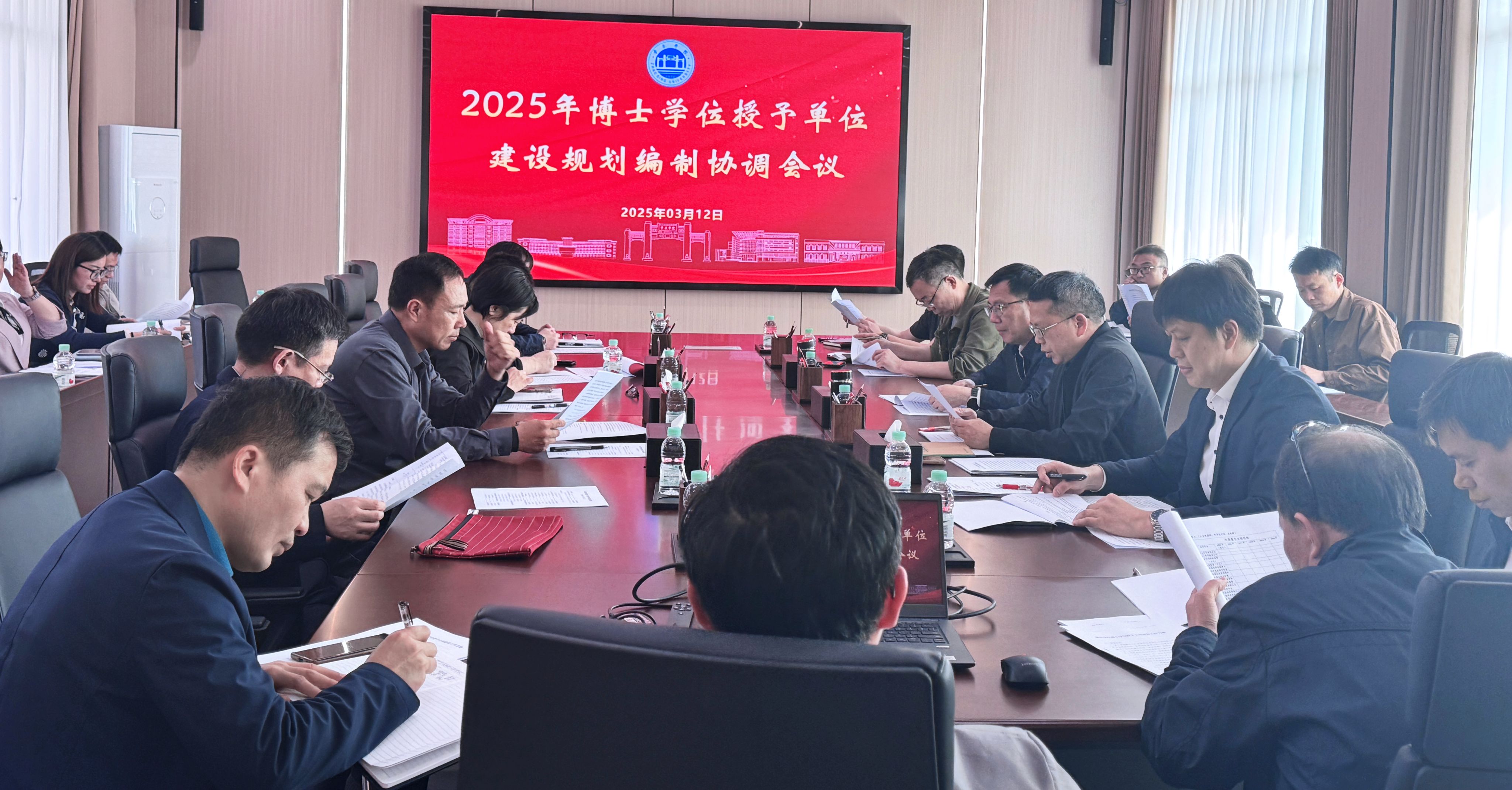 本网讯 3月12日,学校召开了2025年博士学位授予单位建设规划编制工作协调会议。党委书记谢冠华、副校长胡文涛出席会议,学校相关职能部门和具有硕士点的二级学院主要负责人参会。会议由胡文涛主持。