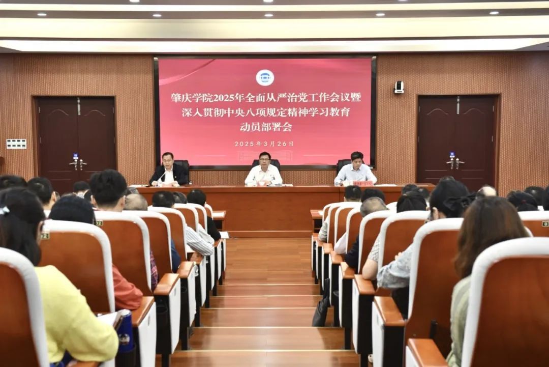 本网讯 3月26日,学校召开2025年全面从严治党会议暨深入贯彻中央八项规定精神学习教育动员部署会议,校党委书记谢冠华作动员讲话,党委副书记欧洪湛主持会议并部署安排学习教育工作,纪委书记、广东省监委驻bat365正版唯一官网监察专员王克俭作学校2025年党风廉政和反腐败工作系统部署,学校领导、党委委员、纪委委员出席,全体中层领导干部,工作专班成员参加会议。