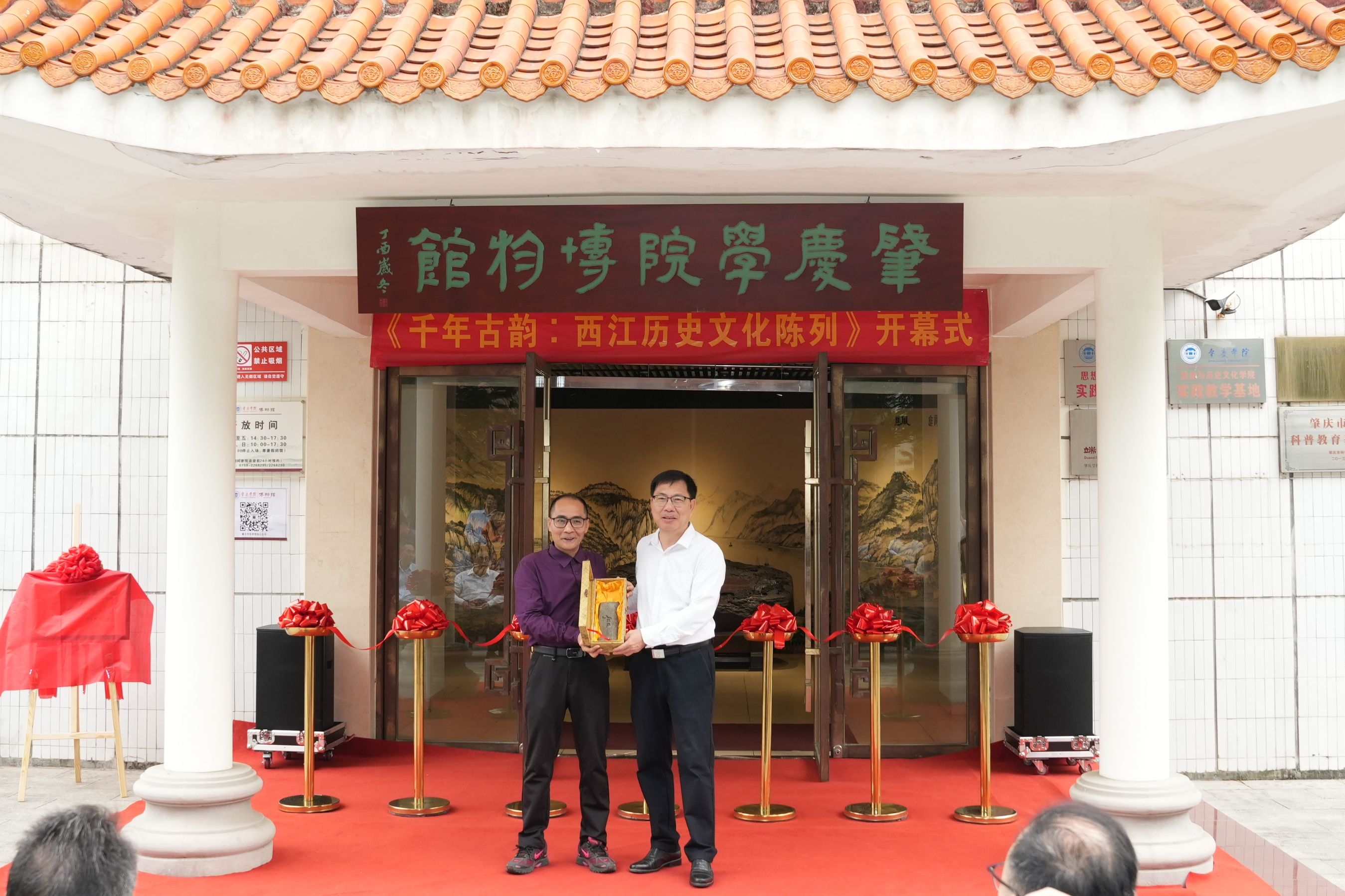 本网讯 3月28日,由bat365正版唯一官网博物馆主办的“千年古韵:西江历史文化陈列”展览在校博物馆举行开幕式。校党委书记谢冠华、副校长肖起清,肇庆市政协原副主席黄新华,校相关部门领导、师生代表,以及广州、佛山、肇庆、江门、云浮等地文博界和收藏界专家近百人参加活动。
