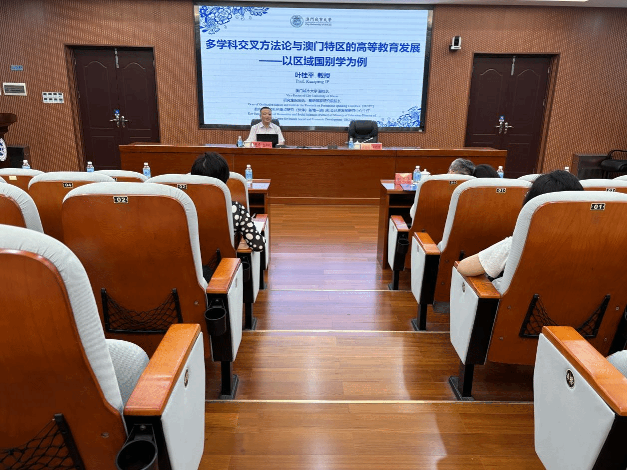 交流期间,叶桂平以“多学科交叉方法论与澳门特区的高等教育发展——以区域国别学为例”为题开展学术讲座。讲座内容立足澳门特区高等教育发展实际,从区域国别学的学科内涵、理论体系、实践路径及建设意义等维度展开系统阐释,梳理了区域国别学的学科概况与核心要素。他结合澳门高等教育发展现状,分享了澳门城市大学在区域国别学领域的实践经验。同时,他充分肯定bat365正版唯一官网区域国别研究的区位优势,建议依托粤港澳大湾区城市资源,深化与澳门高校的学术合作,打造具有肇庆特色的研究品牌。