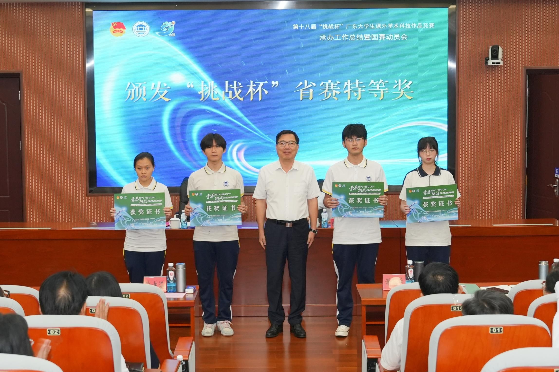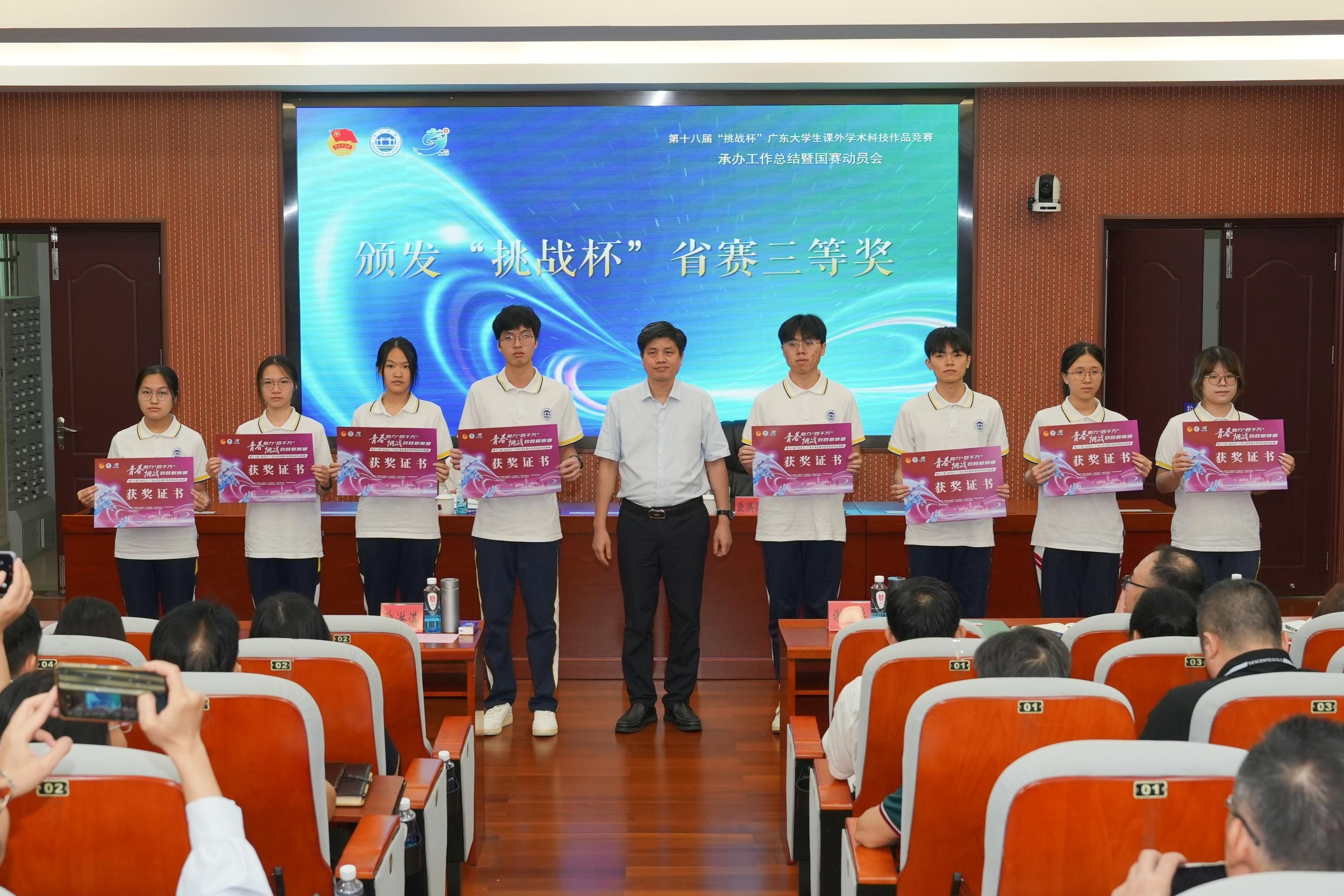 会议伊始,对在本届“挑战杯”省赛中表现卓越的获奖团队进行了表彰。校党委书记谢冠华、副书记欧洪湛亲自为获奖团队颁发荣誉证书,并为赛事志愿者颁发纪念证书,以表彰他们在赛事筹备与举办过程中的辛勤付出与卓越贡献。