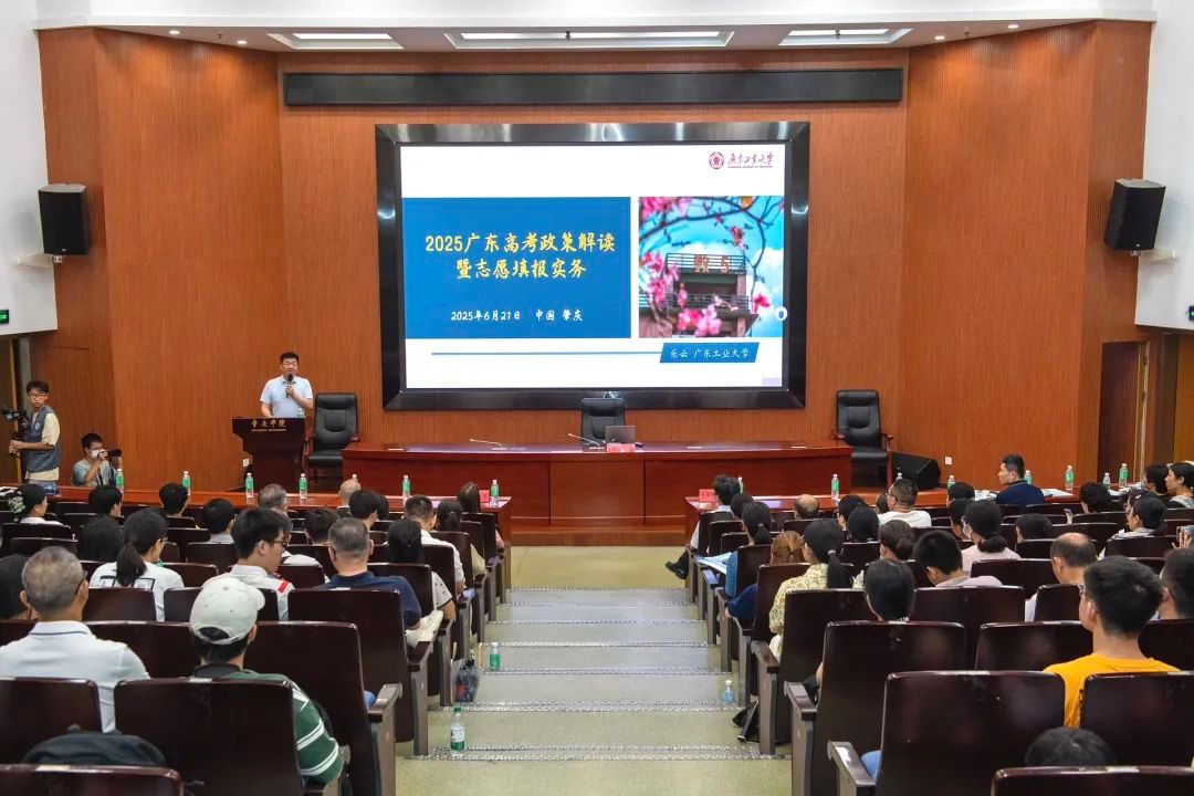 宣讲会与讲座现场,学生工作部负责人就学校2025年本科招生政策、特色专业设置以及毕业生就业前景等考生及家长关心的问题进行了详细解读。讲座邀请知名教育专家乐云教授为与会者带来《2025广东高考政策解读及志愿填报实务》专题报告。报告从“双一流扩招逻辑”“AI时代专业选择”“广东招生新趋势”三个维度展开,为考生志愿填报提供了专业指导。
