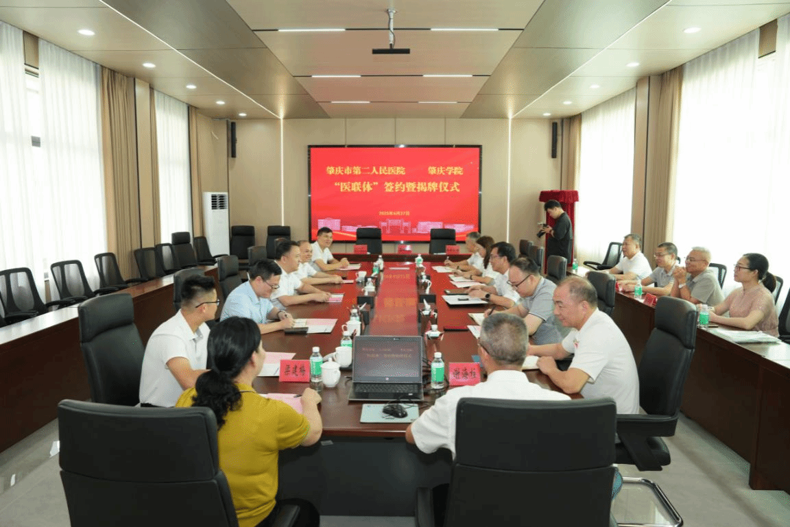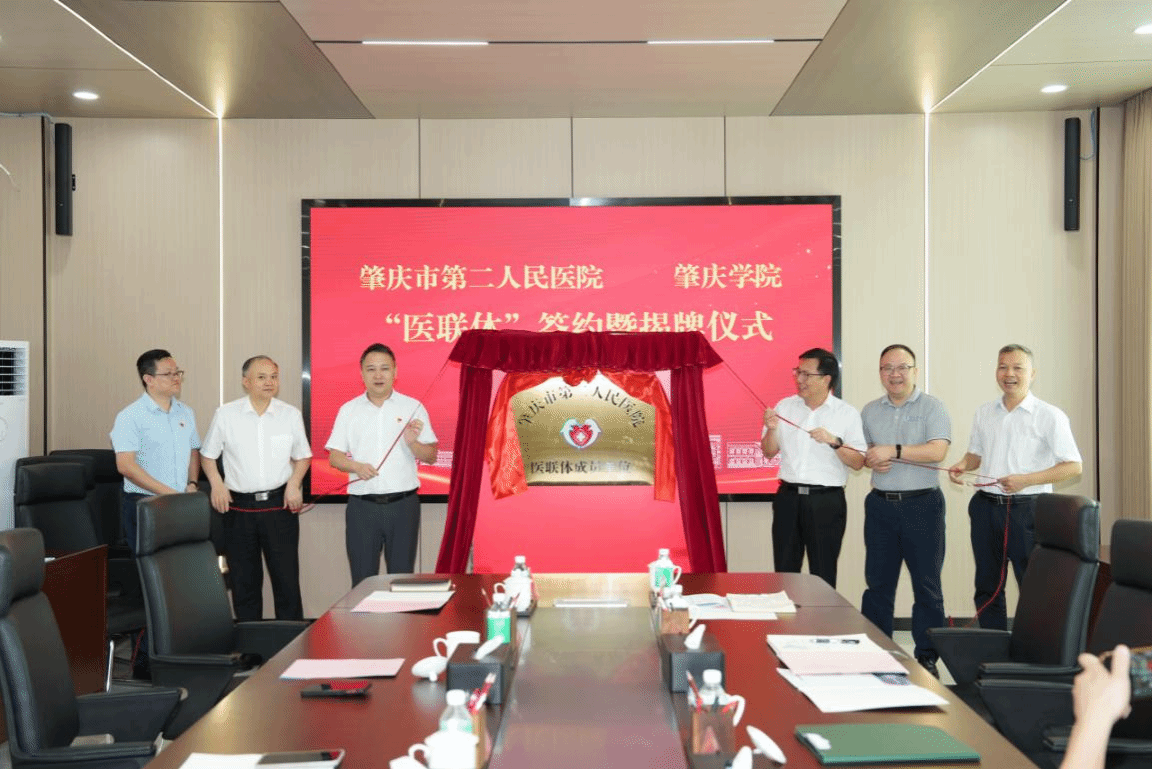 在全体与会人员的见证下,肇庆市第二人民医院与bat365正版唯一官网举行了“医联体”签约、揭牌仪式,标志着校医合作迈入新阶段。