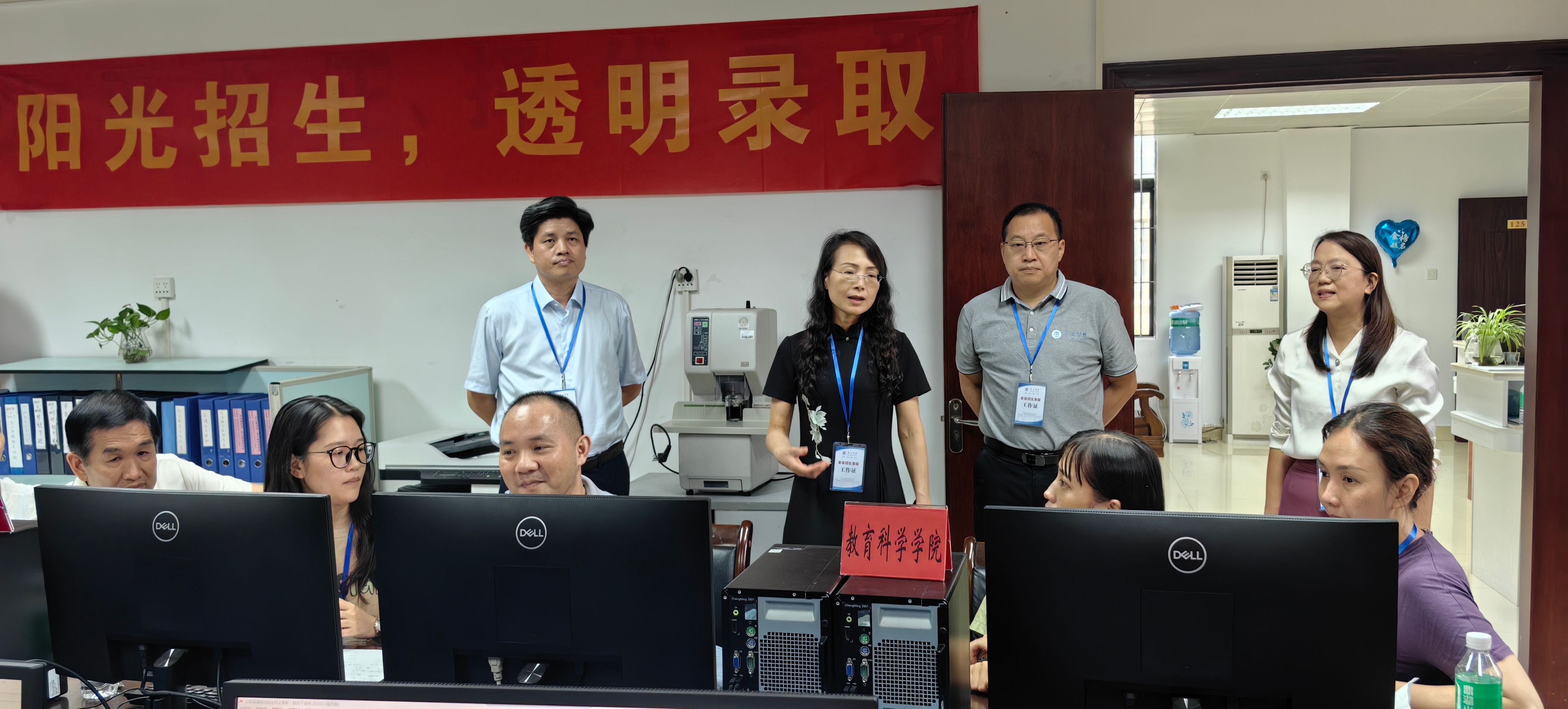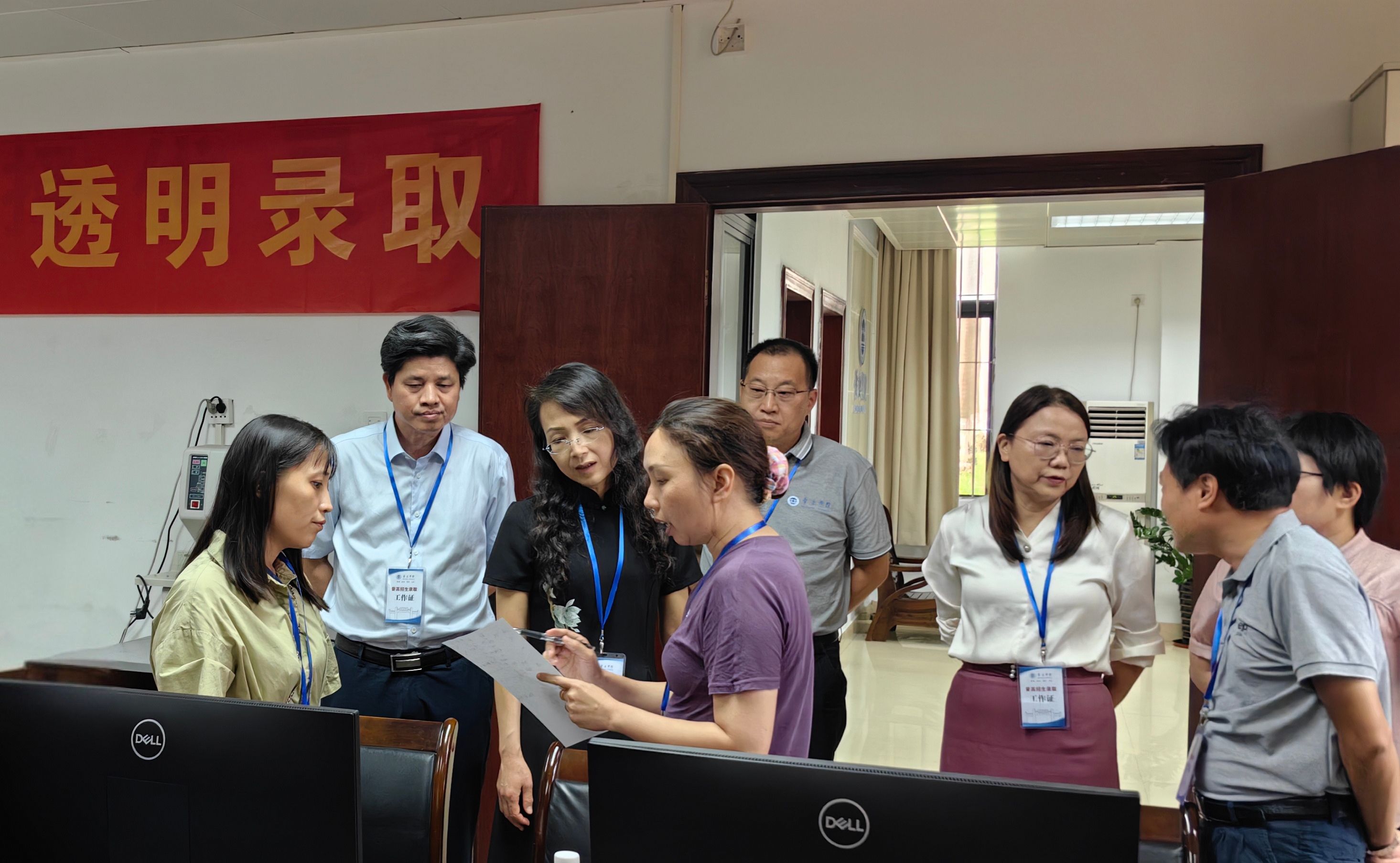 本网讯 7月19日下午,校党委副书记、校长李琴,校党委副书记欧洪湛,纪委书记、监察专员王克俭一行来到bat3652025年普通本科招生录取现场,视察指导本科招录工作,看望慰问一线工作人员。校领导首先听取了今年各专业投档整体情况汇报,对前期各项工作给予充分肯定,并就进一步优化投档工作展开研讨分析。随后校领导一行走进录取现场,与各二级学院工作人员深入交流,仔细询问阅档中考生成绩、志愿信息、特殊标注等内容的具体审核标准,详细了解各专业录取分数区间,同时关注网络安全、后勤保卫等服务保障工作,确保各环节衔接顺畅,招生录取工作平稳有序推进。