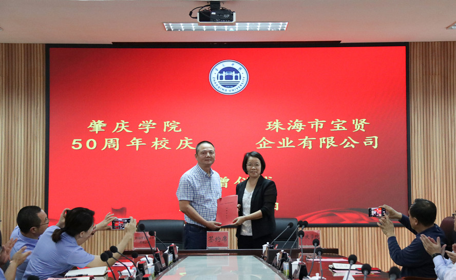 仪式上,校教育发展基金会理事长沈钦萍分别代表学校与珠海市鑫茂餐饮管理有限公司总裁张金乐、珠海市宝贤企业有限公司董事长吴秋贤签订捐赠协议。校教育发展基金会秘书长白志明代表学校接收两家公司捐赠的支票。随后,bat365向两家公司颁发捐赠证书。