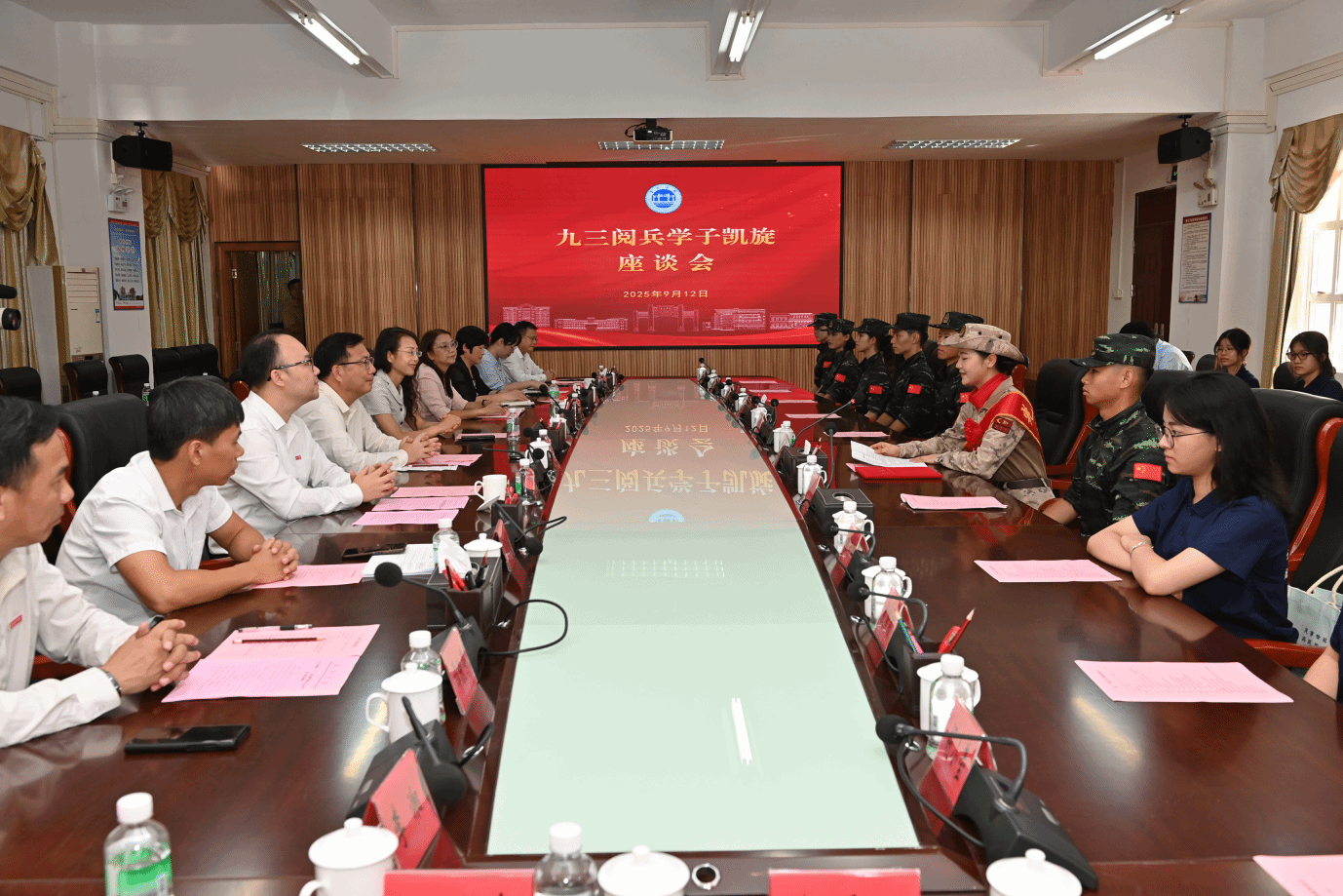 本网讯 9月12日,学校召开九三阅兵学子座谈会,欢迎bat365优秀参阅学子王可心荣誉归来。校党委书记谢冠华,校长李琴,学校相关职能部门负责人,环境与化学工程学院党委书记刘远君、院长李湘等班子成员、辅导员及新生军训教官和青马工程学员代表参会。